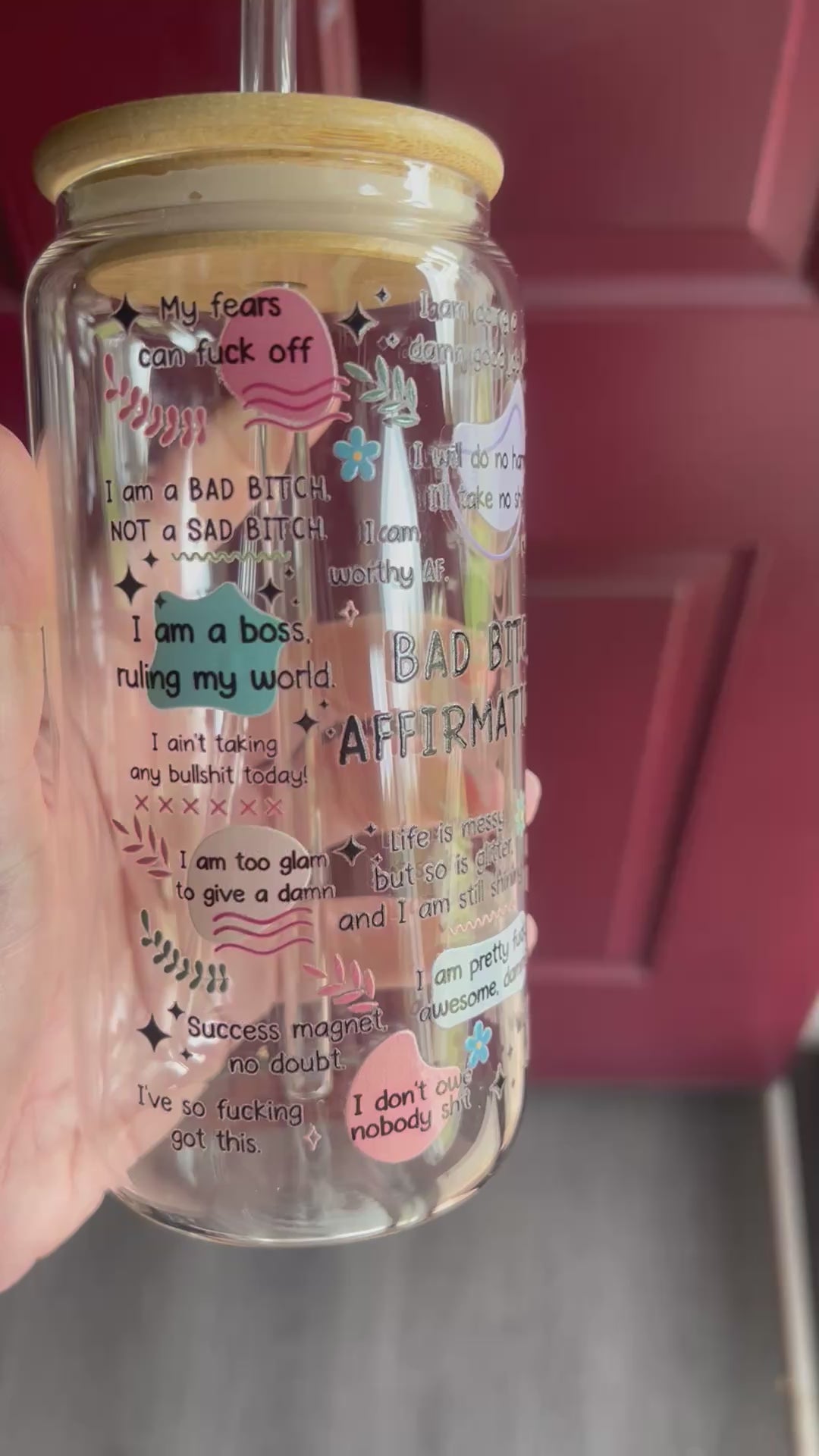 Bad B*tch Affirmations Glass Can with a Glass Straw and Bamboo Lid and Straw Cleaner