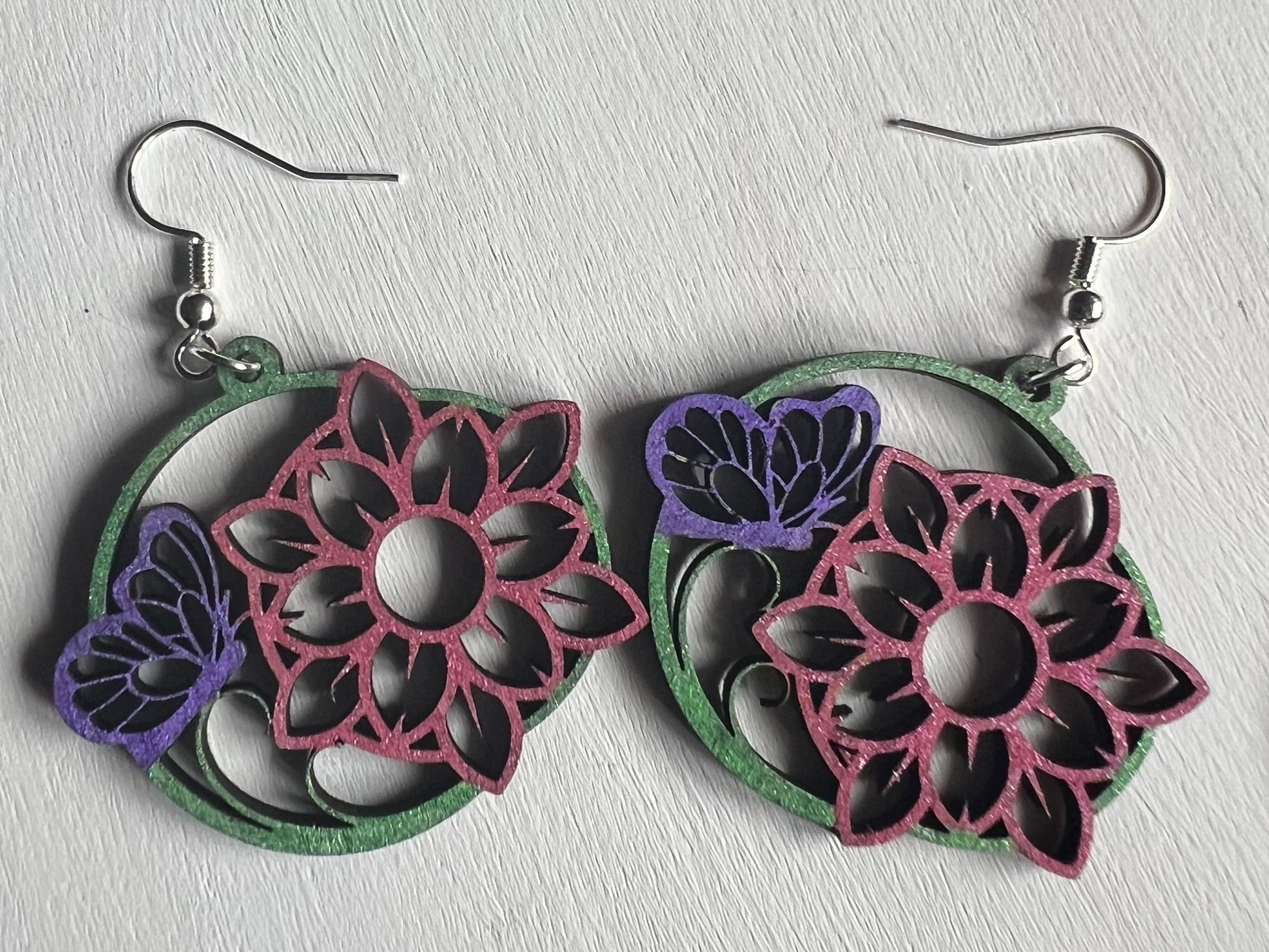 Colorful Floral Butterfly Mandala Wooden Earrings