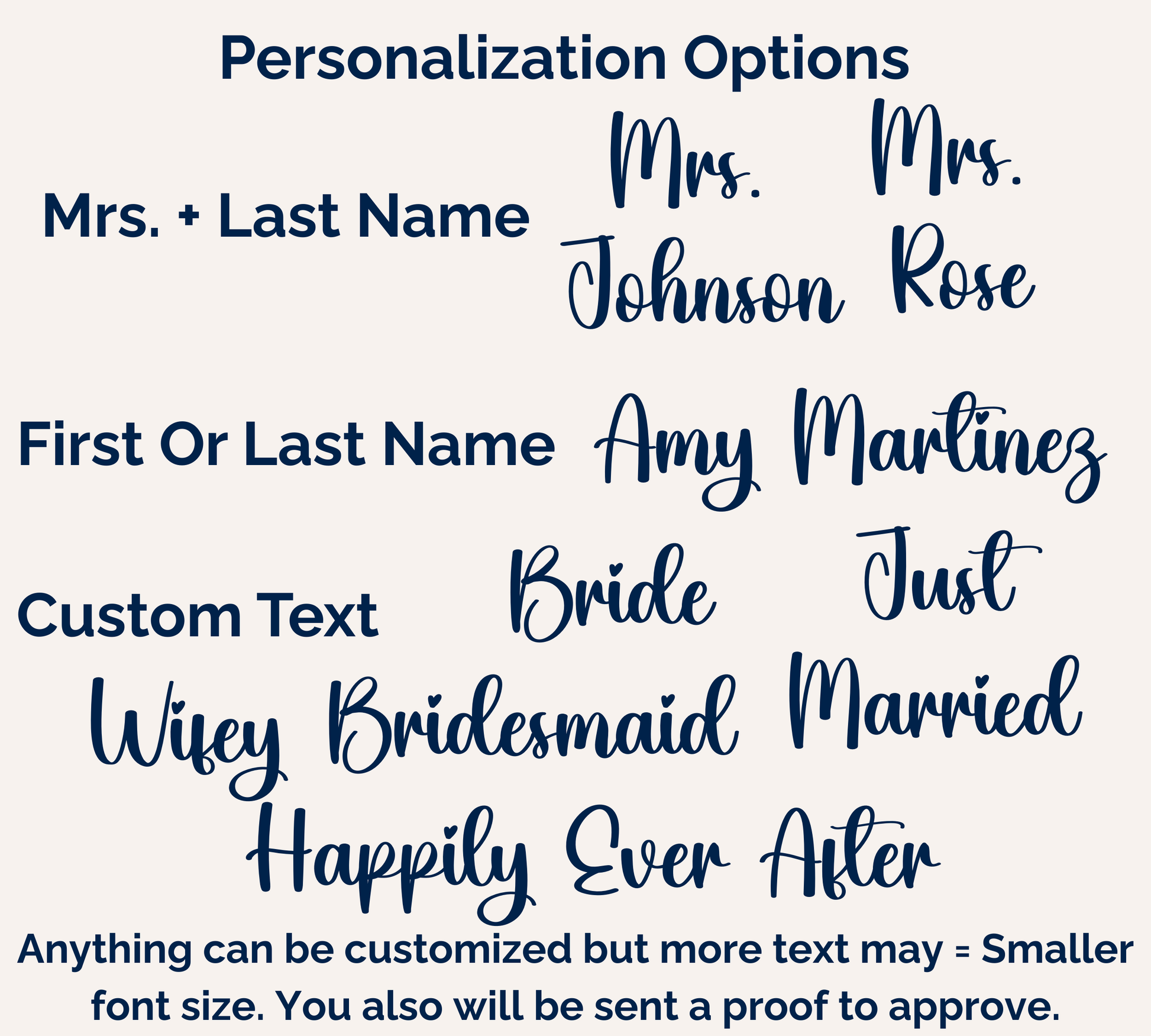 • Back: Custom text (e.g., “Mrs. Smith,” “Mama,” “Teacher Life,” “Boss Babe”)