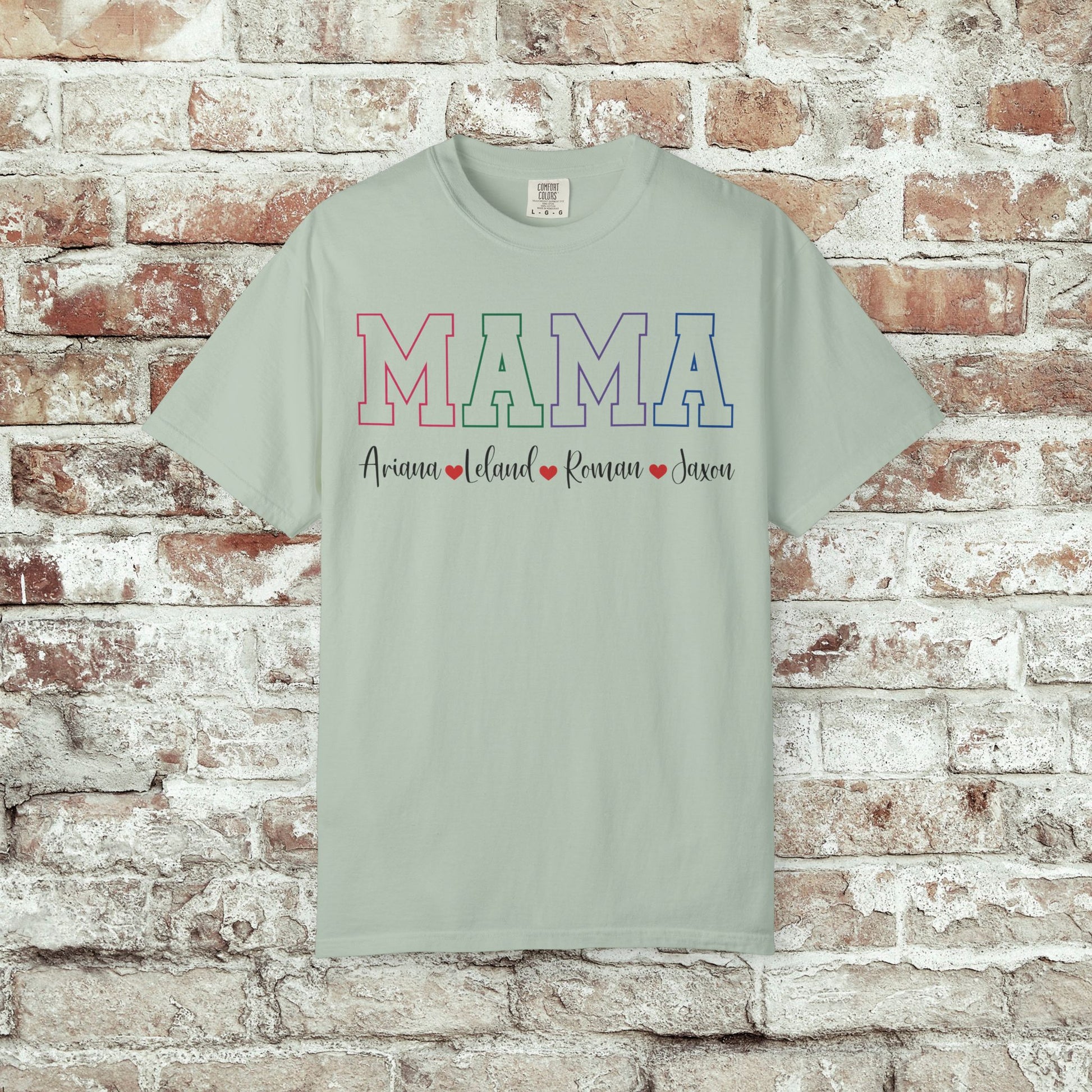 Celebrate your favorite title with this custom “MAMA” Comfort Colors tee! Featuring bold pastel block letters and personalized with your children’s names, this soft and cozy shirt makes the perfect gift for Mother’s Day, birthdays, or just because. Printed on a high-quality Comfort Colors tee for that relaxed, lived-in feel, this design is both stylish and meaningful—just like the moms who wear it! • Mother’s Day gifts • Birthday presents for mama • Baby shower surprises • Everyday mom pride