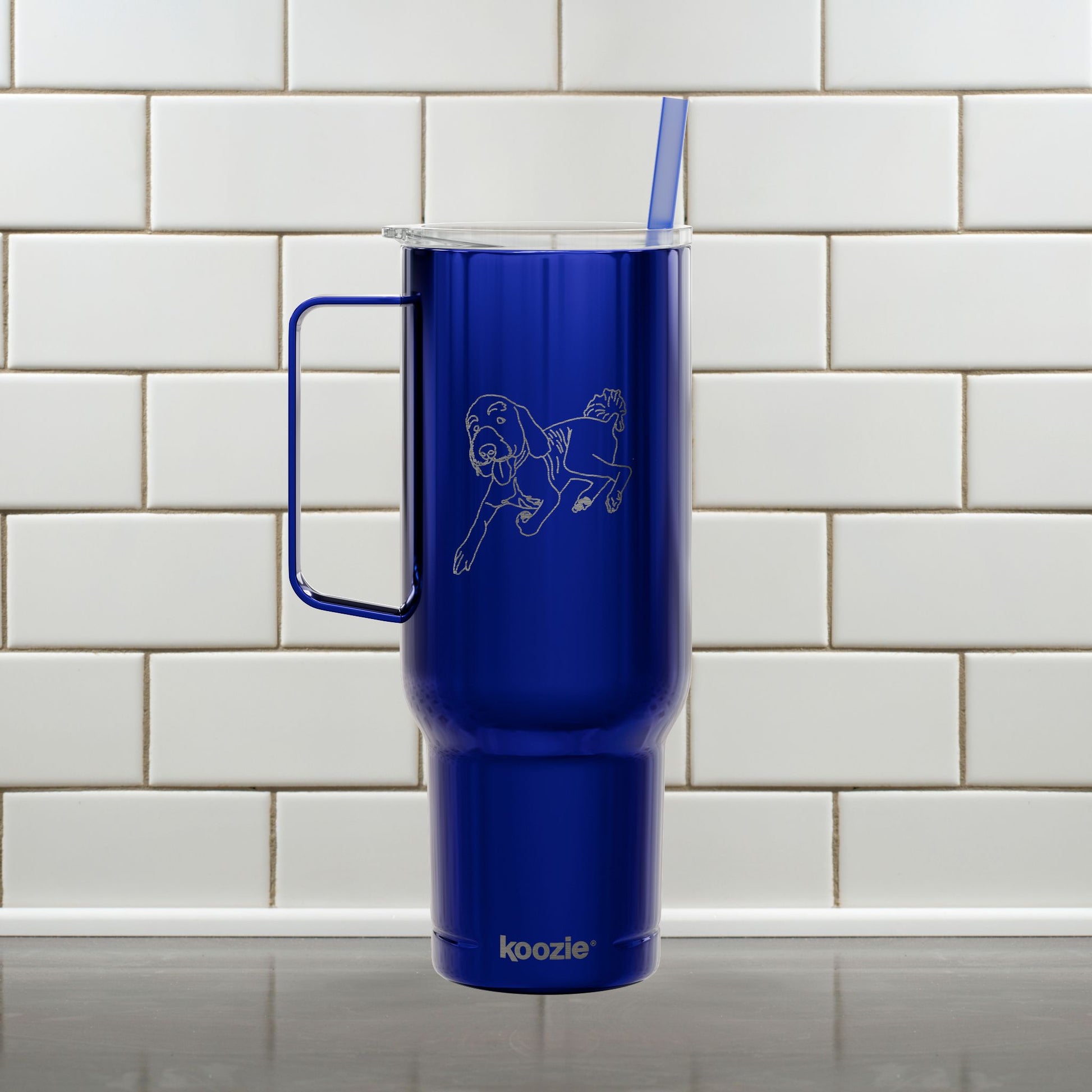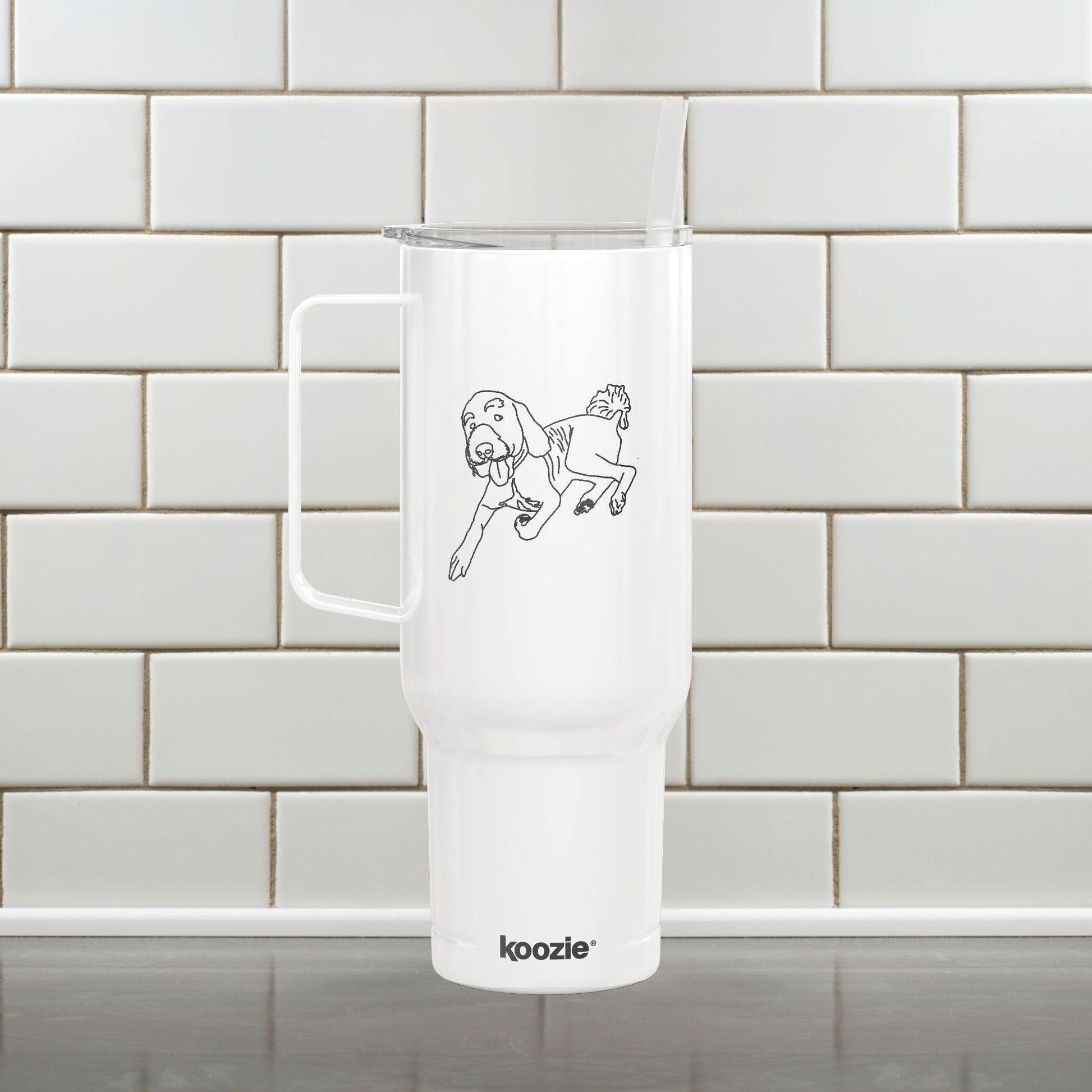 Custom Pet Line Art Engraved Tumbler 40oz Koozie with Handle and Straw