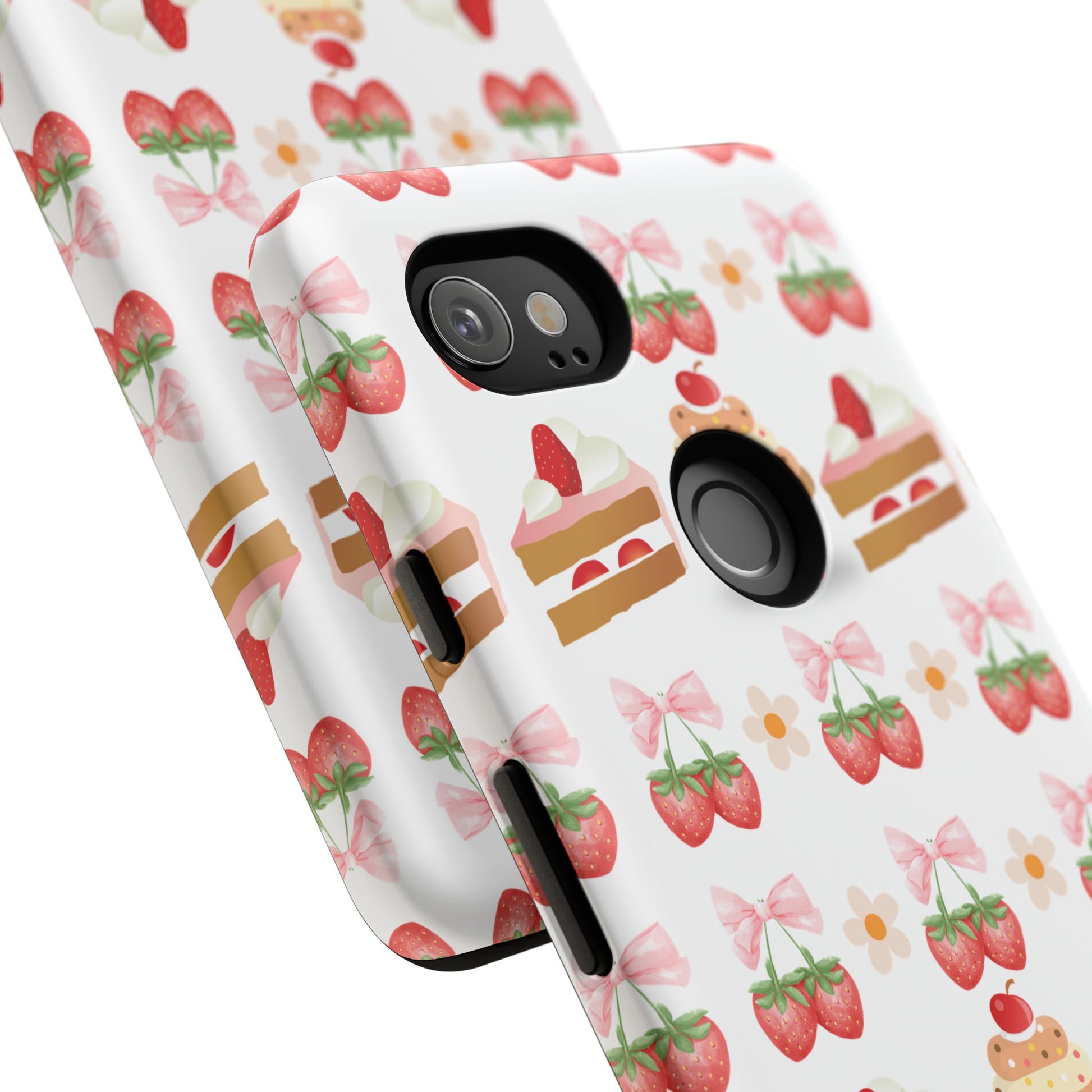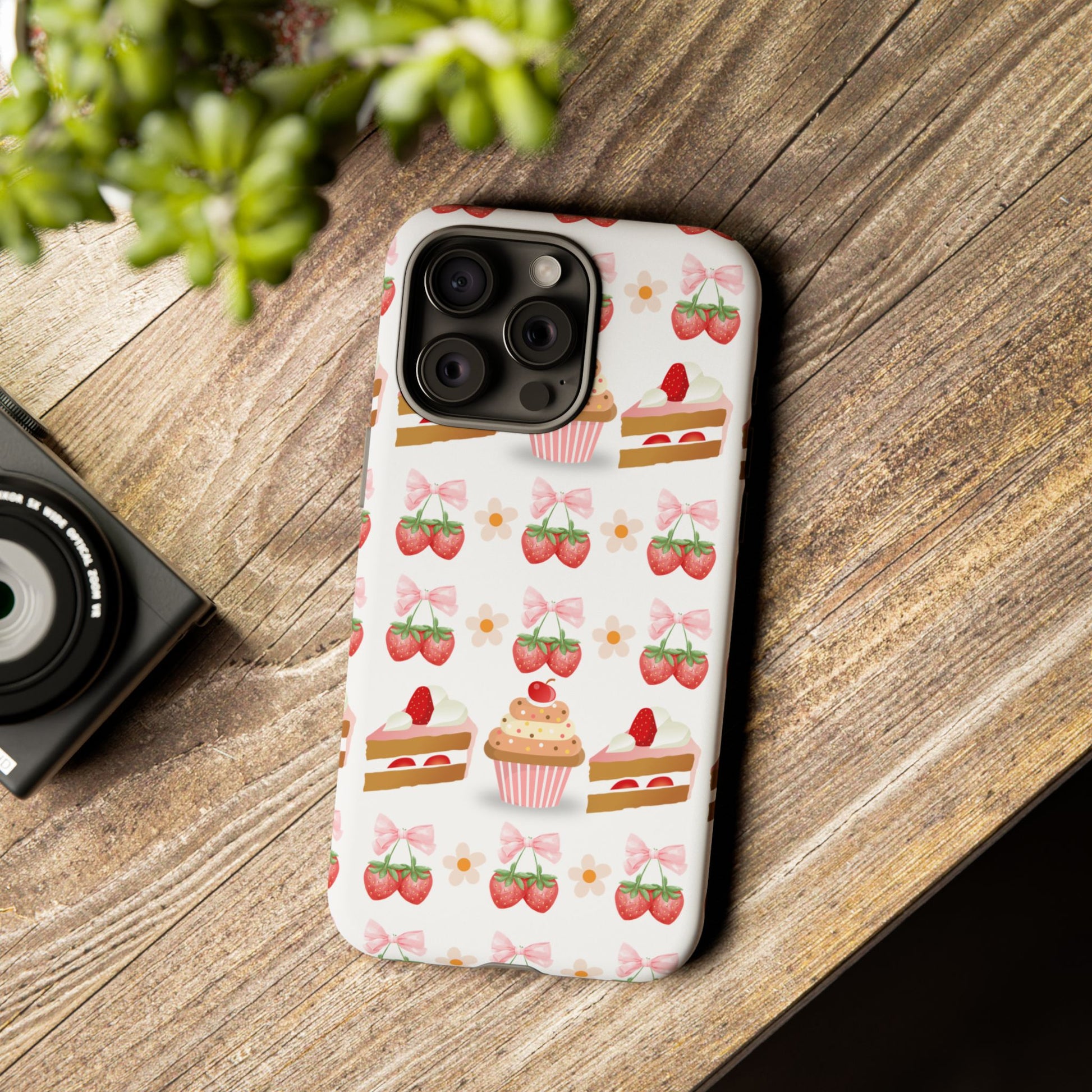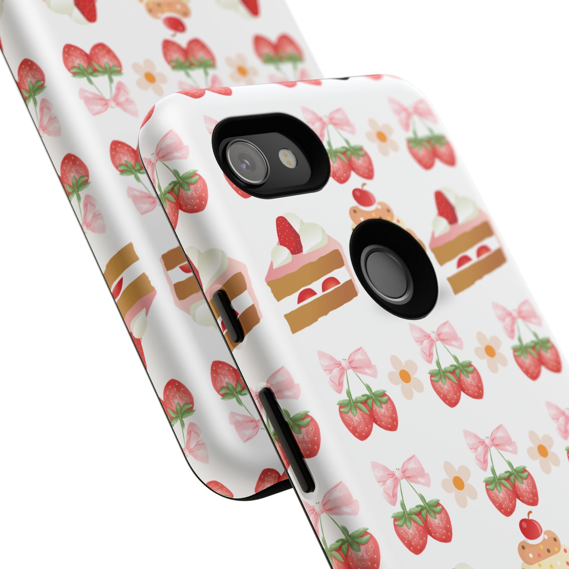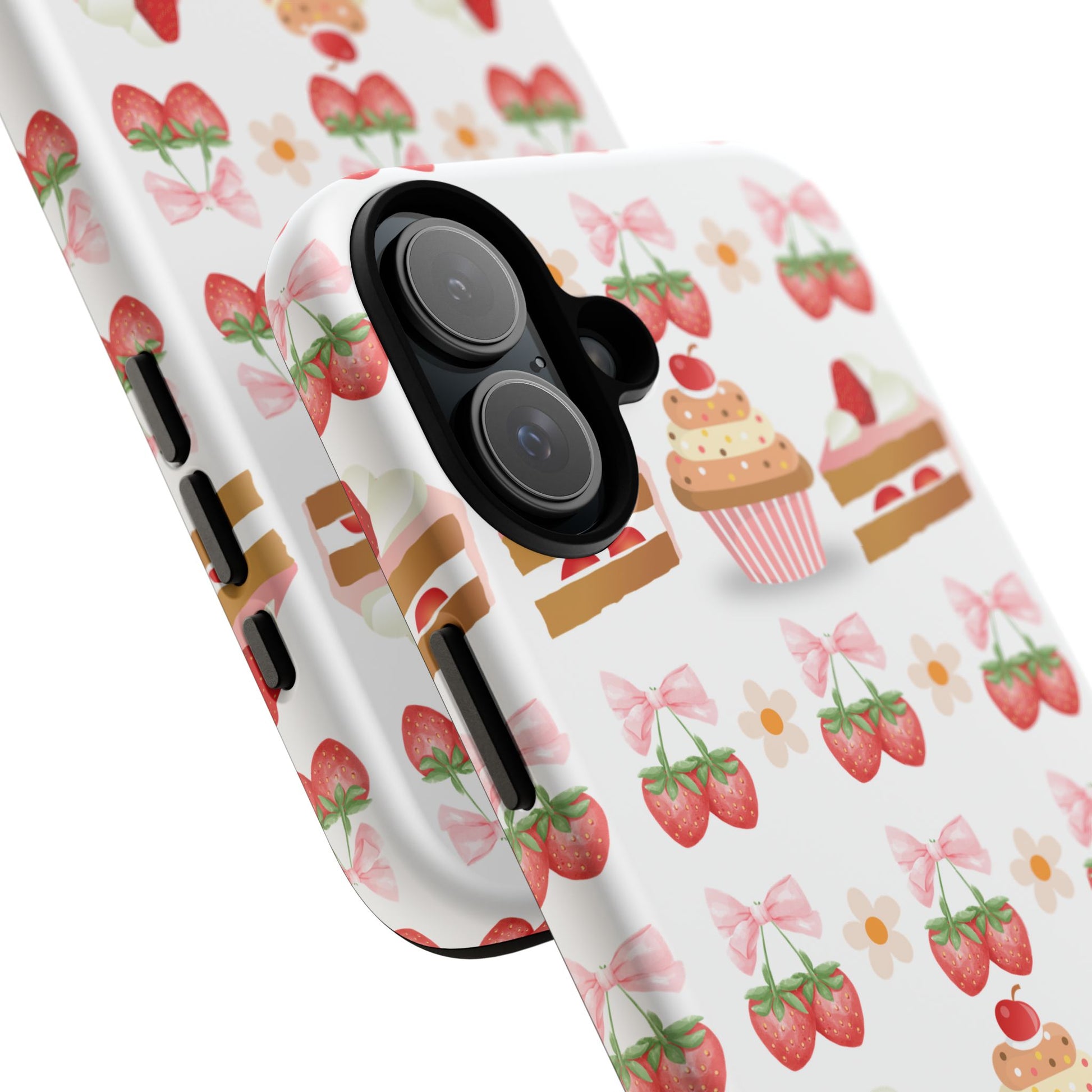 Introducing a delightful phone case that adds a touch of sweetness to your everyday life. With its vibrant design featuring whimsical strawberries, cupcakes, and charming bows, this durable phone case is perfect for those who love all things cute and colorful. Ideal for anyone wanting to protect their device while showcasing their unique style, this phone case transforms your device into a fun accessory. Great for celebrations like birthdays or just as a fun treat for yourself, it resonates with anyone who enjoys expressing their personality through their accessories. Celebrate life's sweet moments with this stylish yet protective phone case! Product features - 3D wrap for vibrant, full ink coverage - UV protected for long-lasting outdoor durability - Dual layer design for superior shock absorption - Supports wireless charging compatibility
