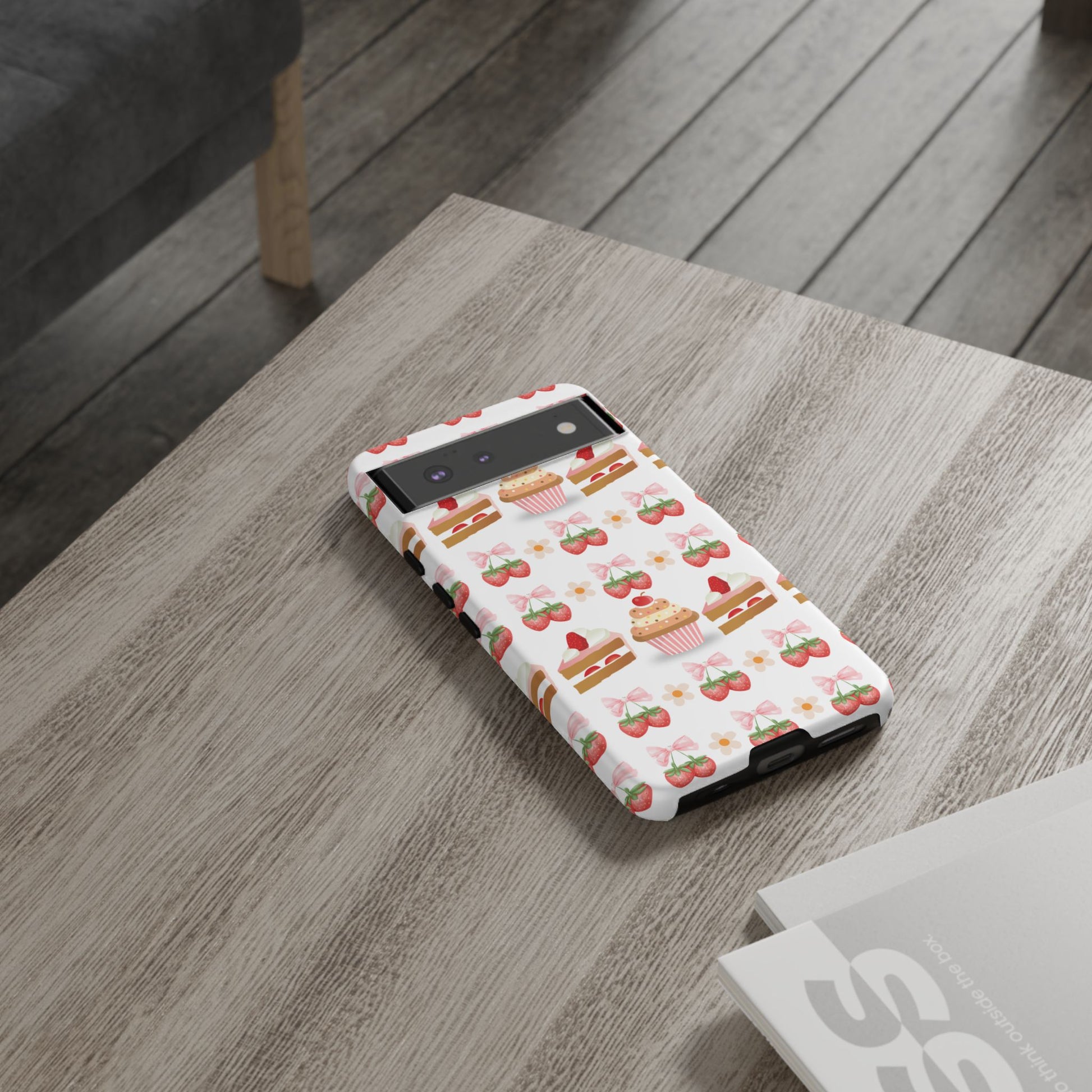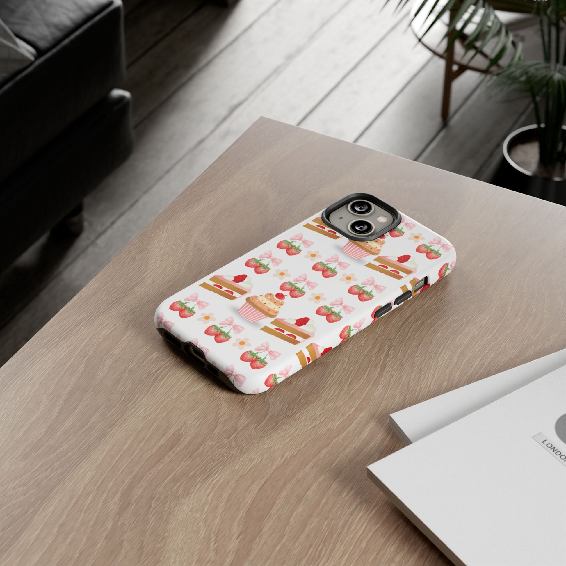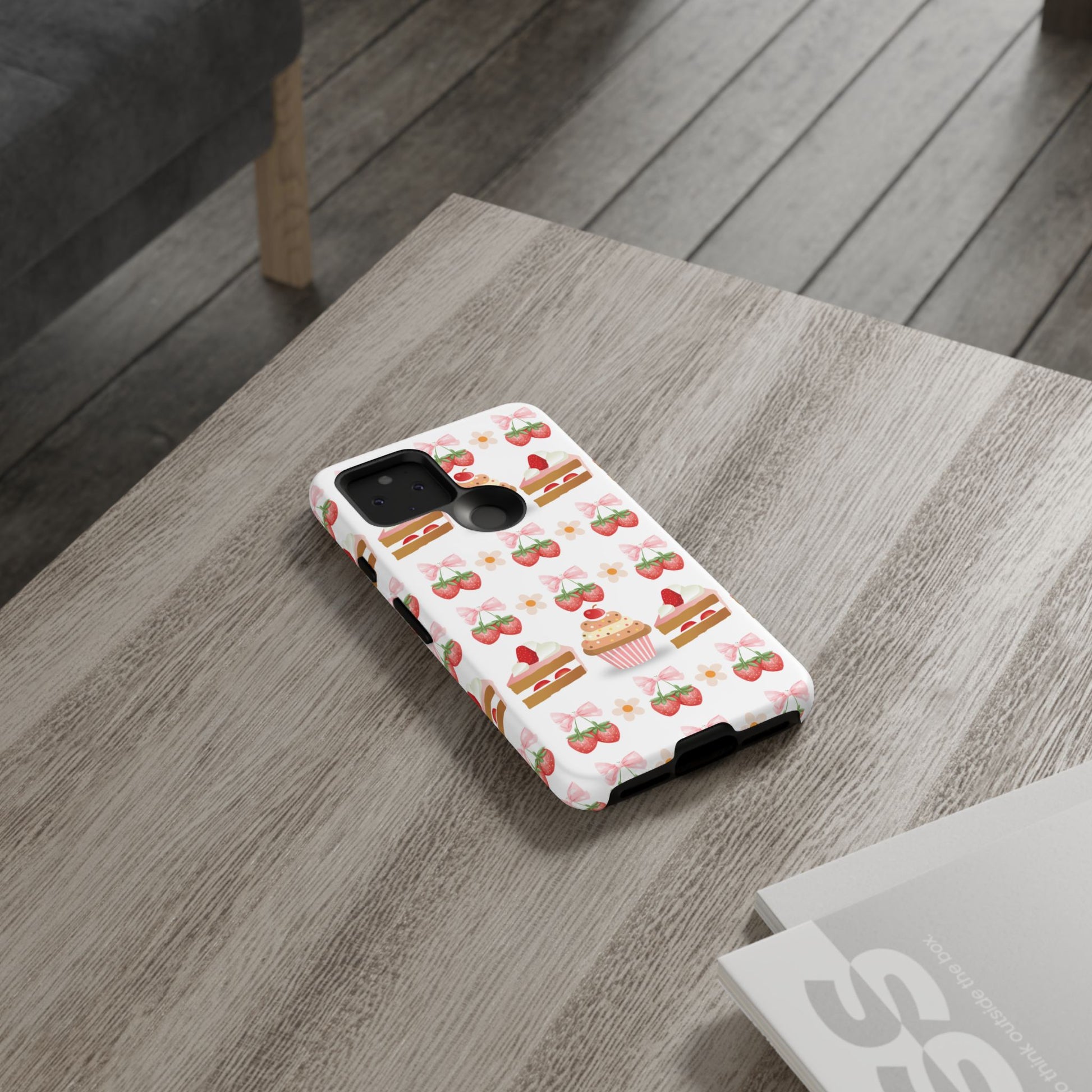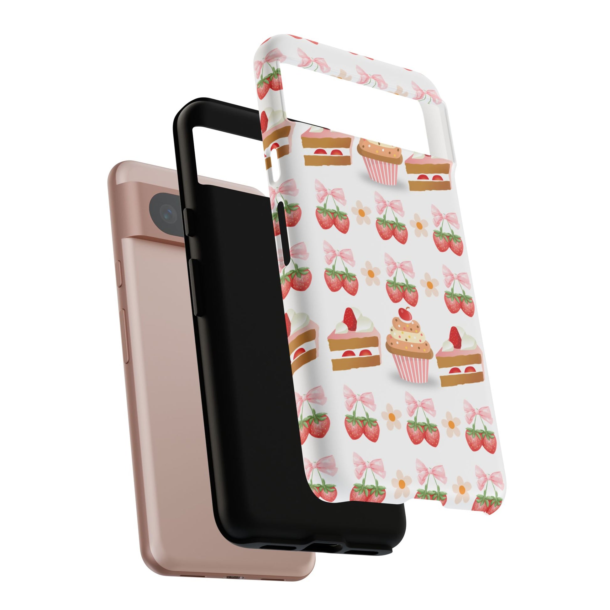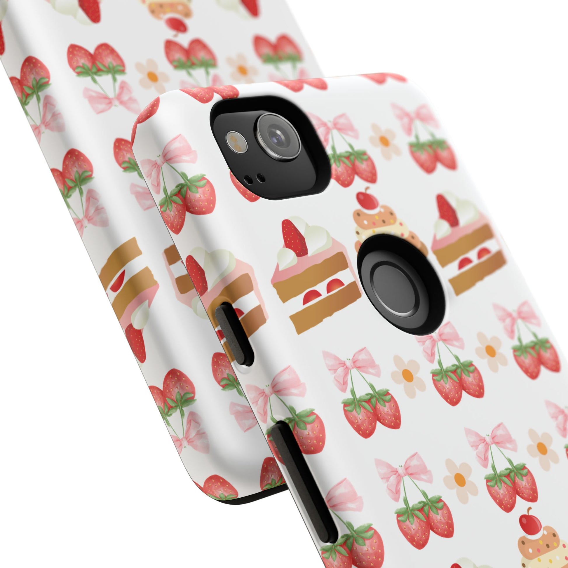 Introducing a delightful phone case that adds a touch of sweetness to your everyday life. With its vibrant design featuring whimsical strawberries, cupcakes, and charming bows, this durable phone case is perfect for those who love all things cute and colorful. Ideal for anyone wanting to protect their device while showcasing their unique style, this phone case transforms your device into a fun accessory. Great for celebrations like birthdays or just as a fun treat for yourself, it resonates with anyone who enjoys expressing their personality through their accessories. Celebrate life's sweet moments with this stylish yet protective phone case! Product features - 3D wrap for vibrant, full ink coverage - UV protected for long-lasting outdoor durability - Dual layer design for superior shock absorption - Supports wireless charging compatibility