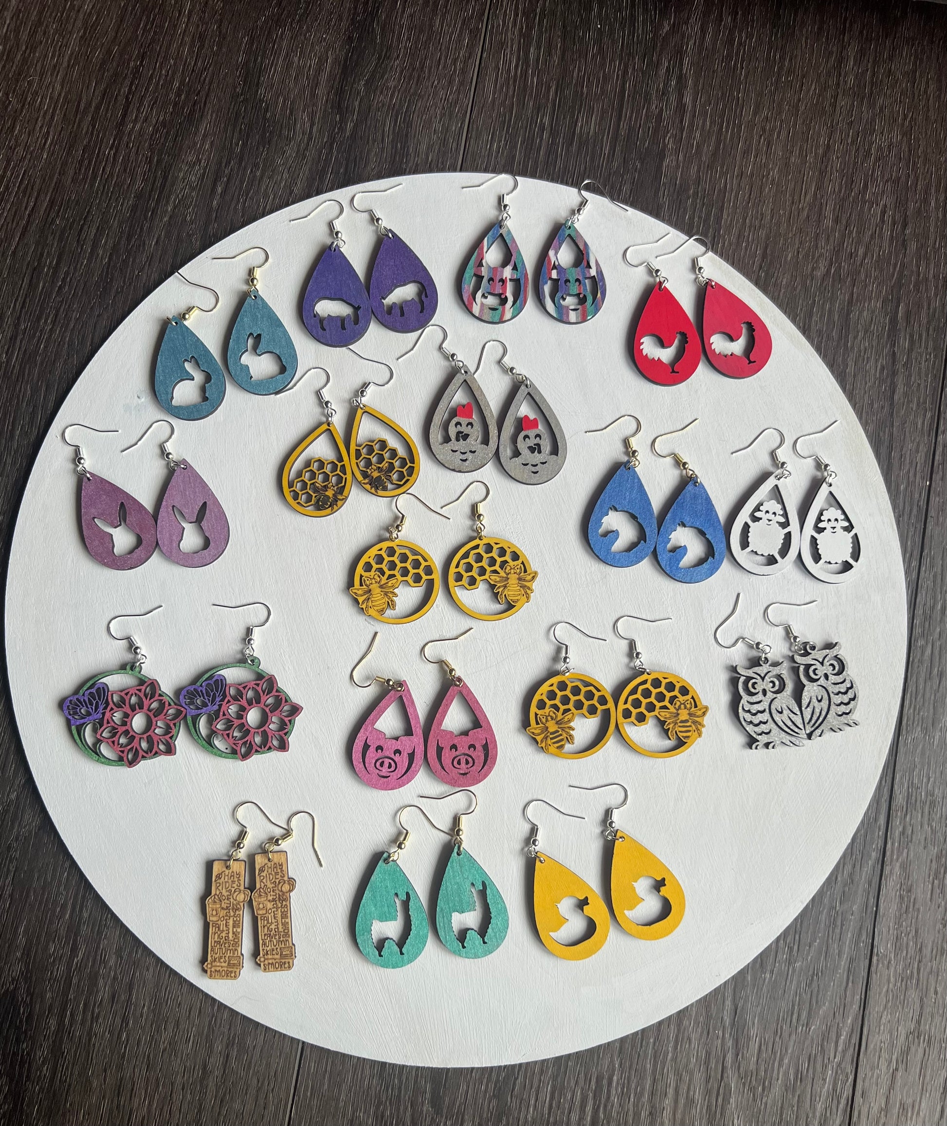 They are wooden, and hand painted just for you! All Earring hooks are hypoallergenic and you can choose if you want gold or silver!