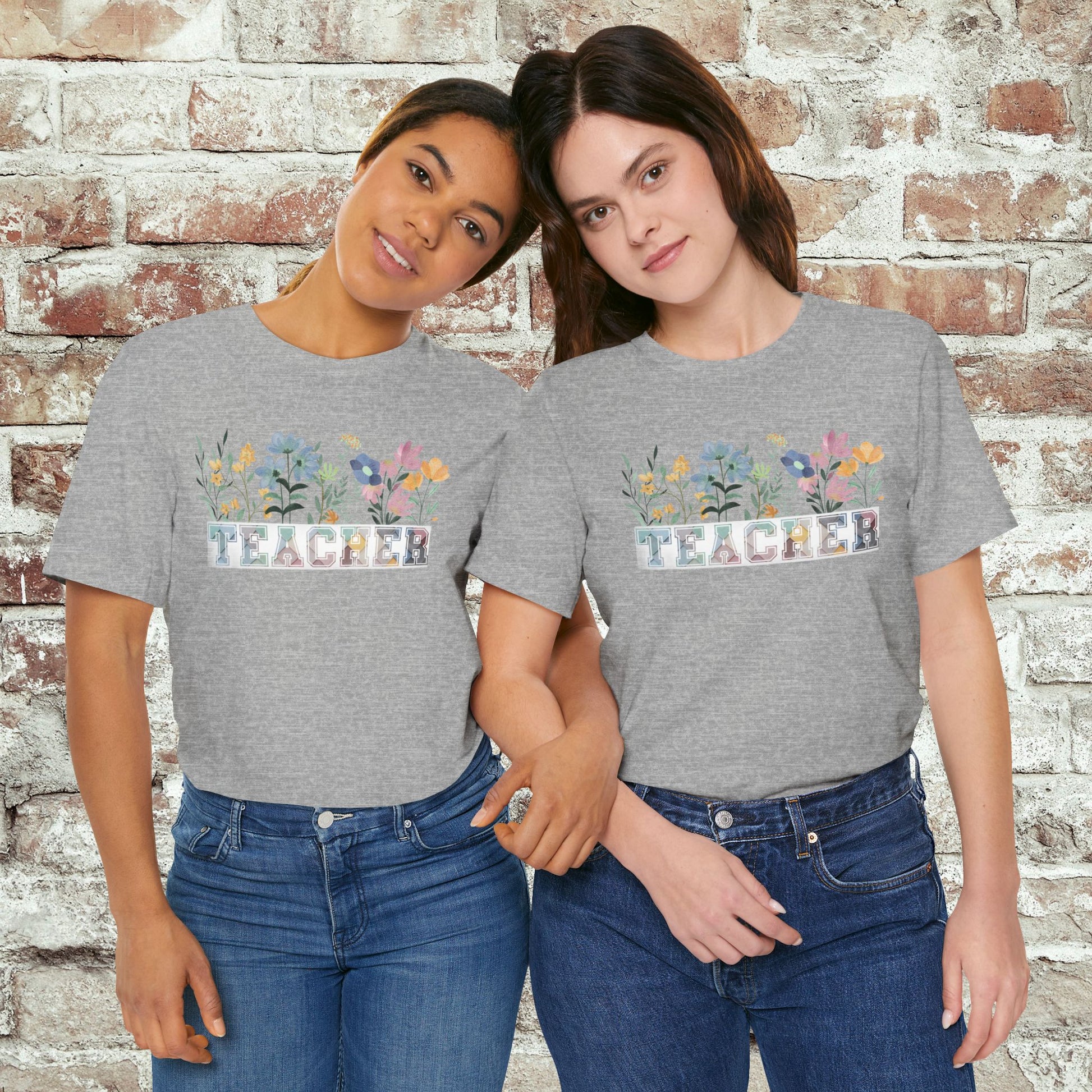 Introducing our comfortable Unisex Soft-Style Jersey Short Sleeve Tee, designed for those who appreciate both style and comfort. This tee is perfect for casual outings, lounging at home, or dressing up for gatherings with loved ones. The vibrant floral design and the decorative 'TEACHER' text make it a heartfelt gift for educators. Ideal for Teacher Appreciation Week, birthdays, or simply as a token of gratitude, this tee resonates with anyone who takes pride in education. Its breathable, lightweight fabric ensures you stay comfortable throughout the day, making it an essential addition to any wardrobe. Embrace the joy of teaching and show your appreciation with this delightful tee! Product features - Structural integrity with side seams for lasting shape - Ribbed knit collar retains its shape for long-term use - Stabilized shoulder seams prevent stretching with shoulder tape - Crisp and vibrant sleeve and neck label prints from high-quality techniques - Made with 100% Airlume combed and ring-spun cotton for ultimate comfort
