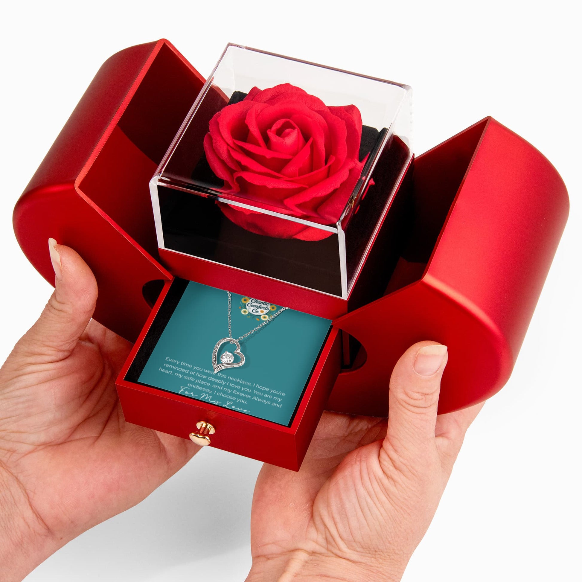 Create an unforgettable gifting experience with our elegant Forever Love Necklace and Heart Box gift set. The everlasting rose symbolizes eternal love, while the sparkling necklace serves as the perfect token of your love. Ideal for birthdays, anniversaries, or any special occasion, this beautiful package is guaranteed to make your loved one feel truly cherished and appreciated.