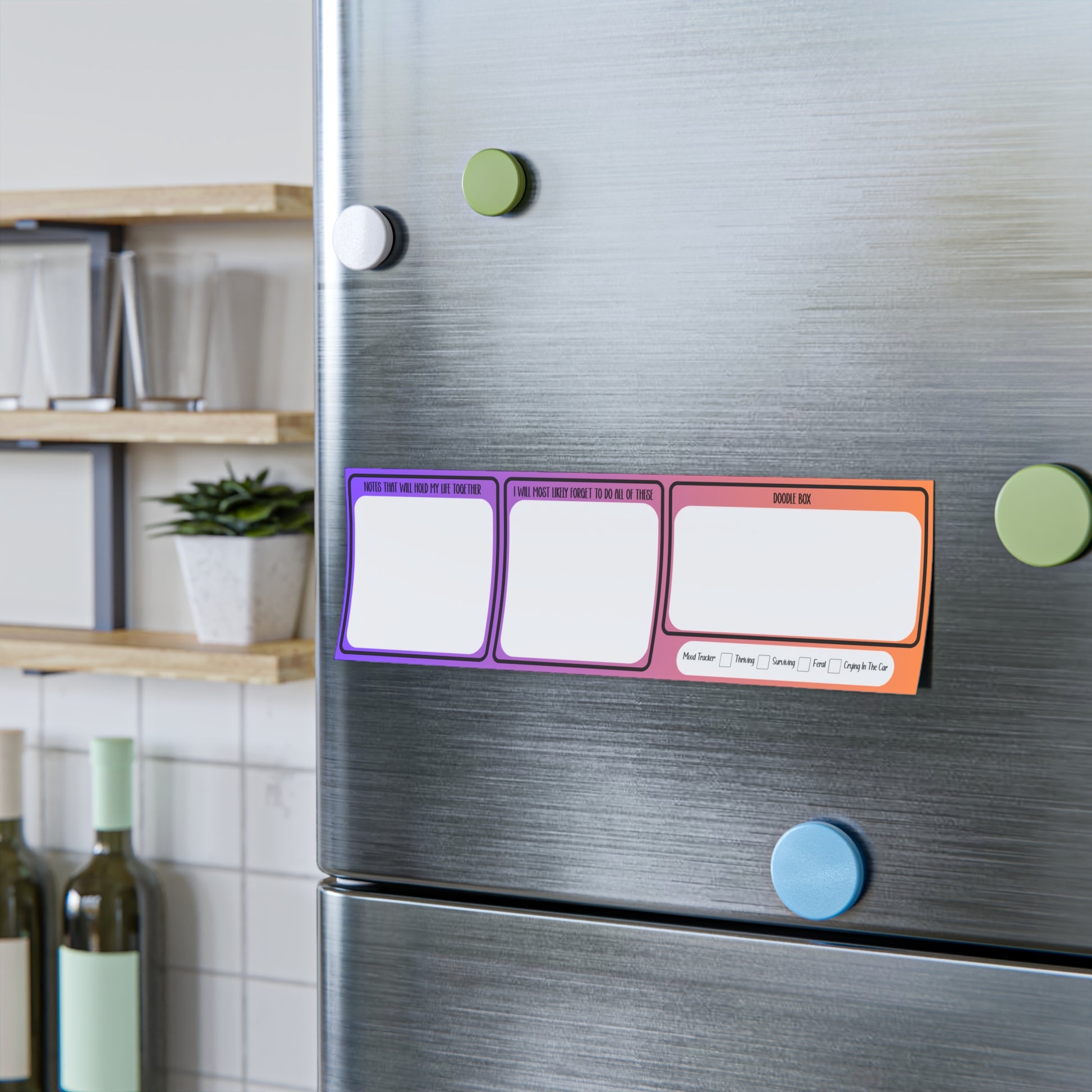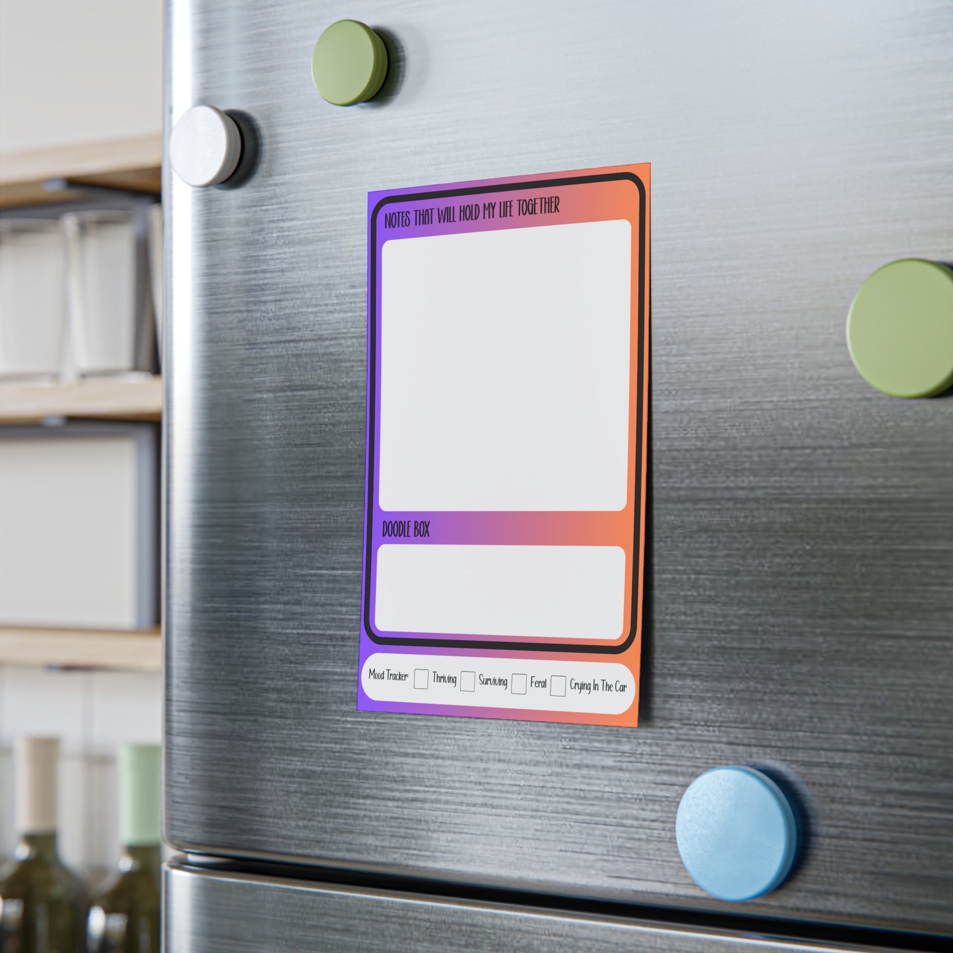 🧠💥 This colorful sticky note design includes: • “Notes That Will Hold My Life Together” section for the important stuff • “I Will Most Likely Forget To Do All Of These” to-do list • Doodle Box for brain breaks and creative chaos • Fun checkboxes at the bottom: “Mood Tracker,” “Thriving,” “Surviving,” “Feral,” “Crying In The Car” Stick it on your desk, your fridge, or your forehead (okay maybe not that)—wherever your executive dysfunction leads you. Great for gifting to your favorite ADHD-er, neurodivergent friends, college students, or exhausted coworkers who just need a moment. SIZE OPTIONS: • 4 x 6 inch • 8 x 6 inch • 10 x 3 inch (long) • 10 x 6 inch (extra space) Perfect for planners, daily life, or reminders you’ll absolutely forget anyway (but at least it’ll look cute). Printed on high-quality paper with a colorful gradient background that stands out.