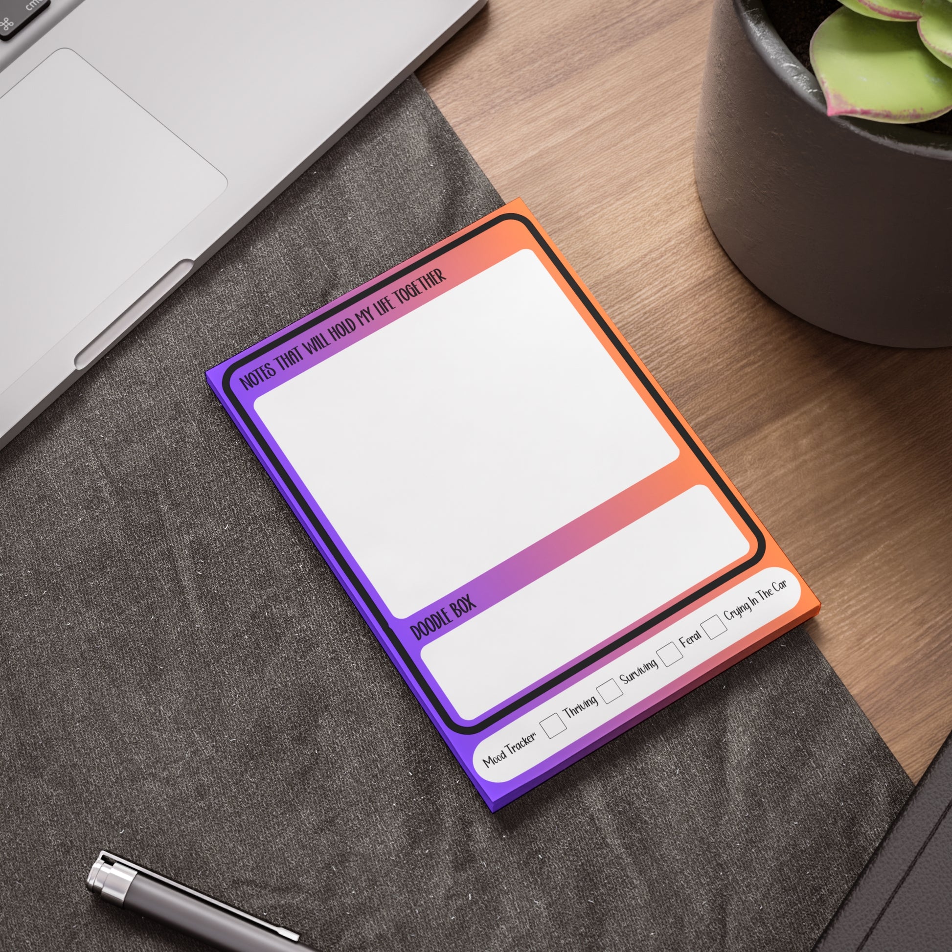 Stay on top of your beautiful chaos with this funny and functional Post-it® Note pad brain dump, made for neurodivergent minds, busy moms or dads, working-from-home warriors, and anyone whose brain runs on vibes and sarcasm.