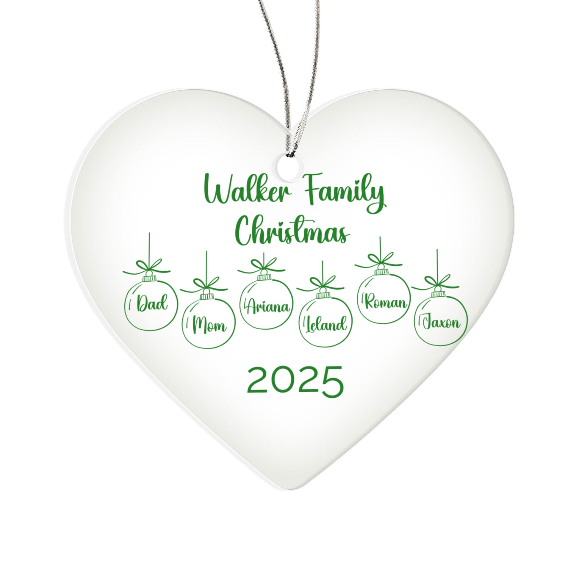 Green Personalized Family Christmas Ornaments Acrylic Heart Ornament