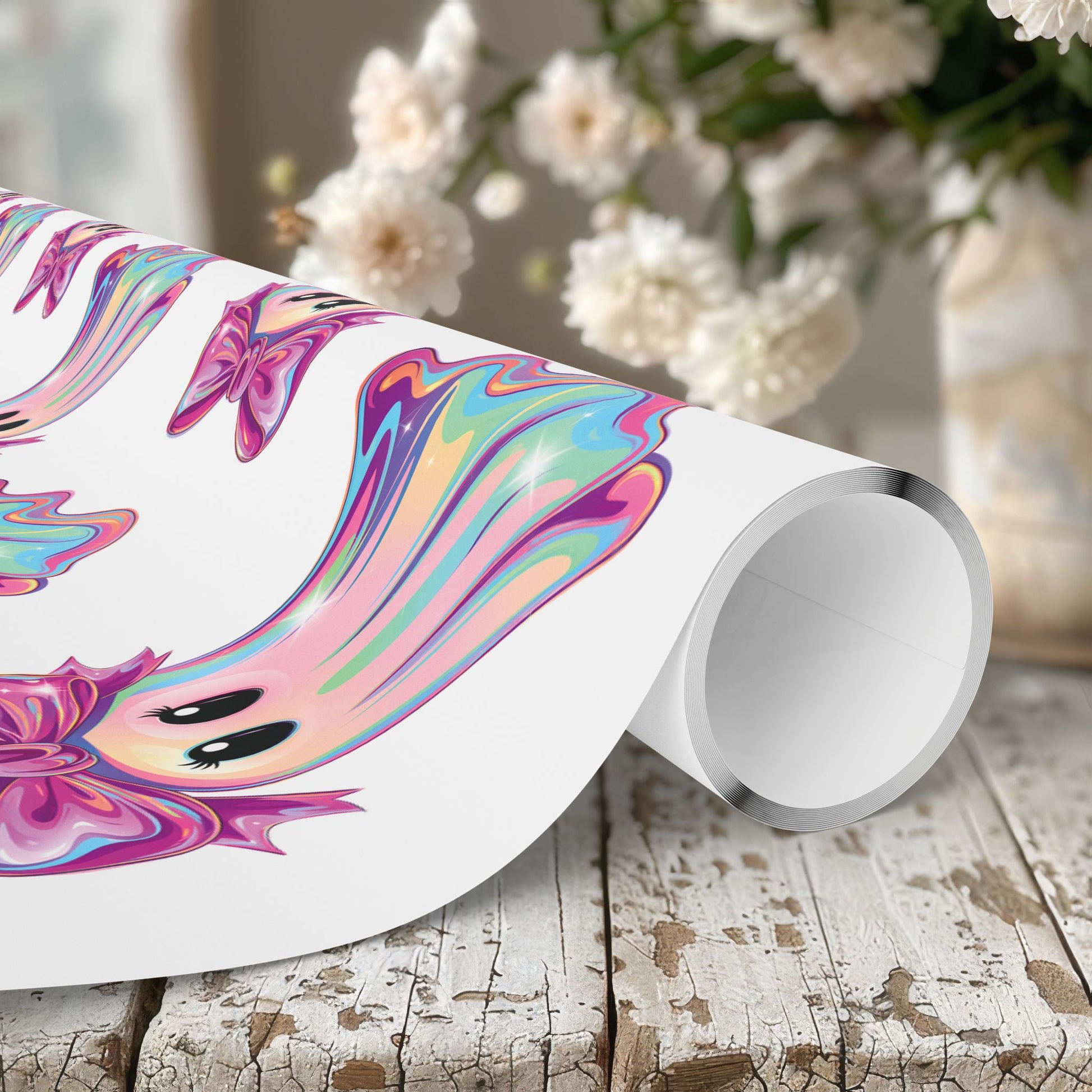 Wrap your gifts in spooky sweetness with this iridescent ghost wrapping paper! Featuring a pastel ghost with a cute bow on her head, this design is perfect for adding a charming touch to Halloween party favors, boo baskets, October birthdays, or just treating your spooky bestie. Printed on high-quality, (choice of glossy or matte) paper that’s easy to cut and fold — because gift wrap should be fun, not frustrating.