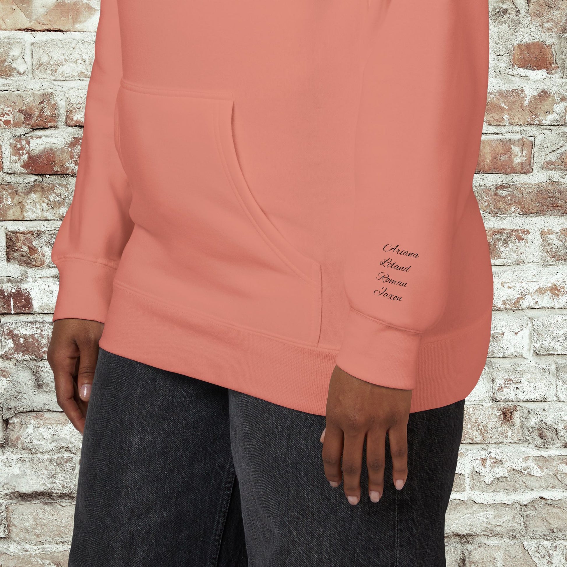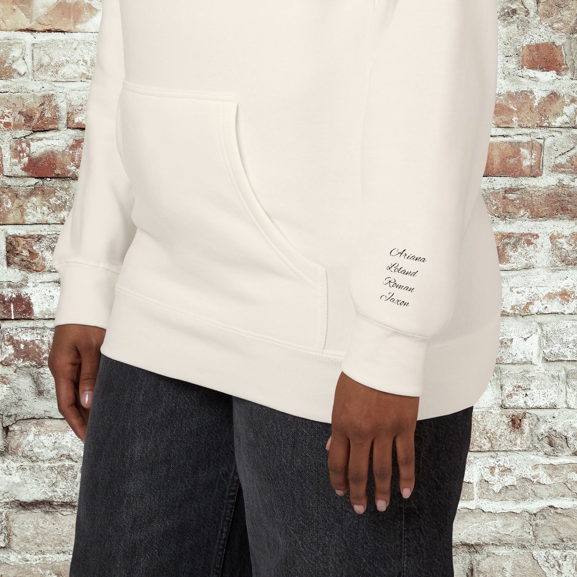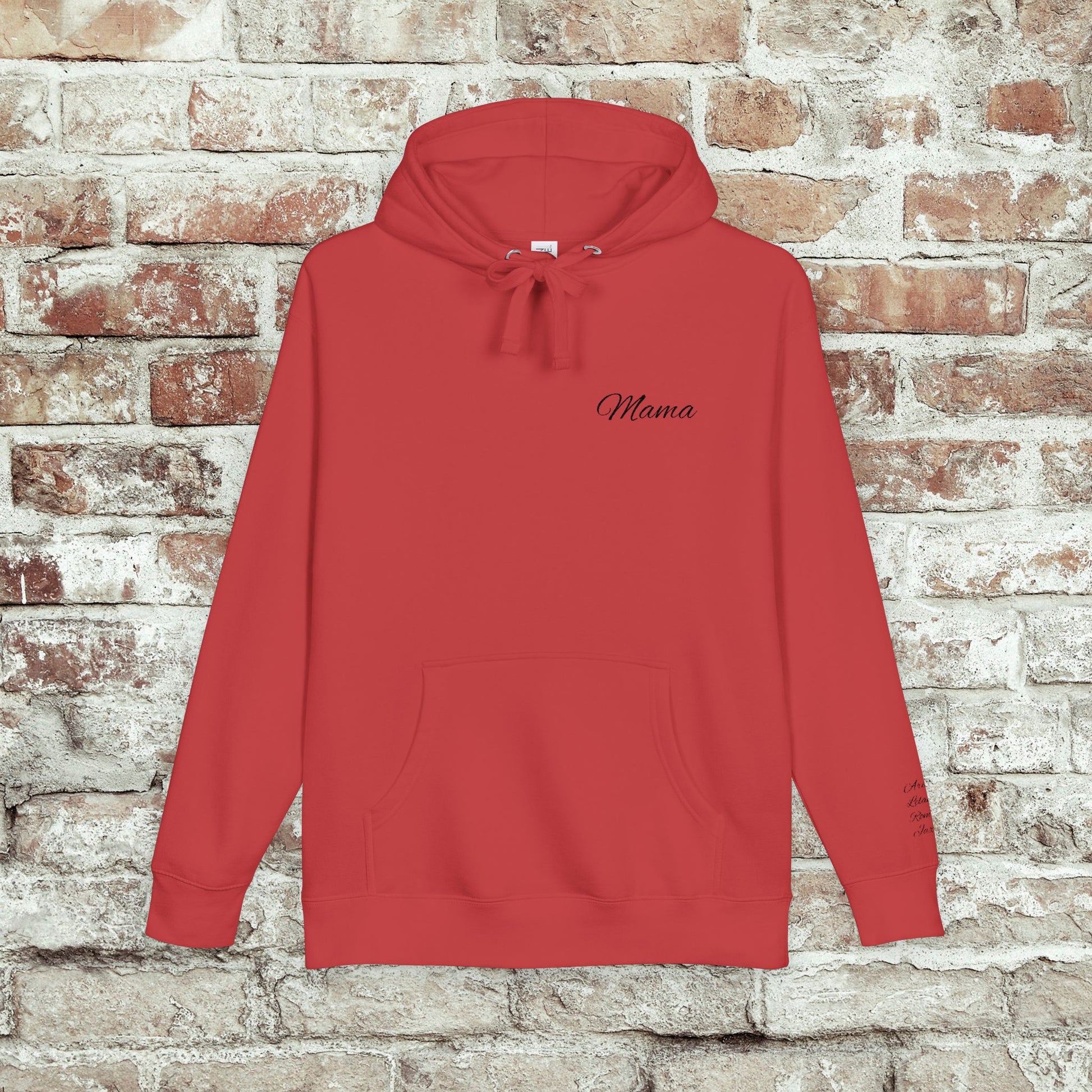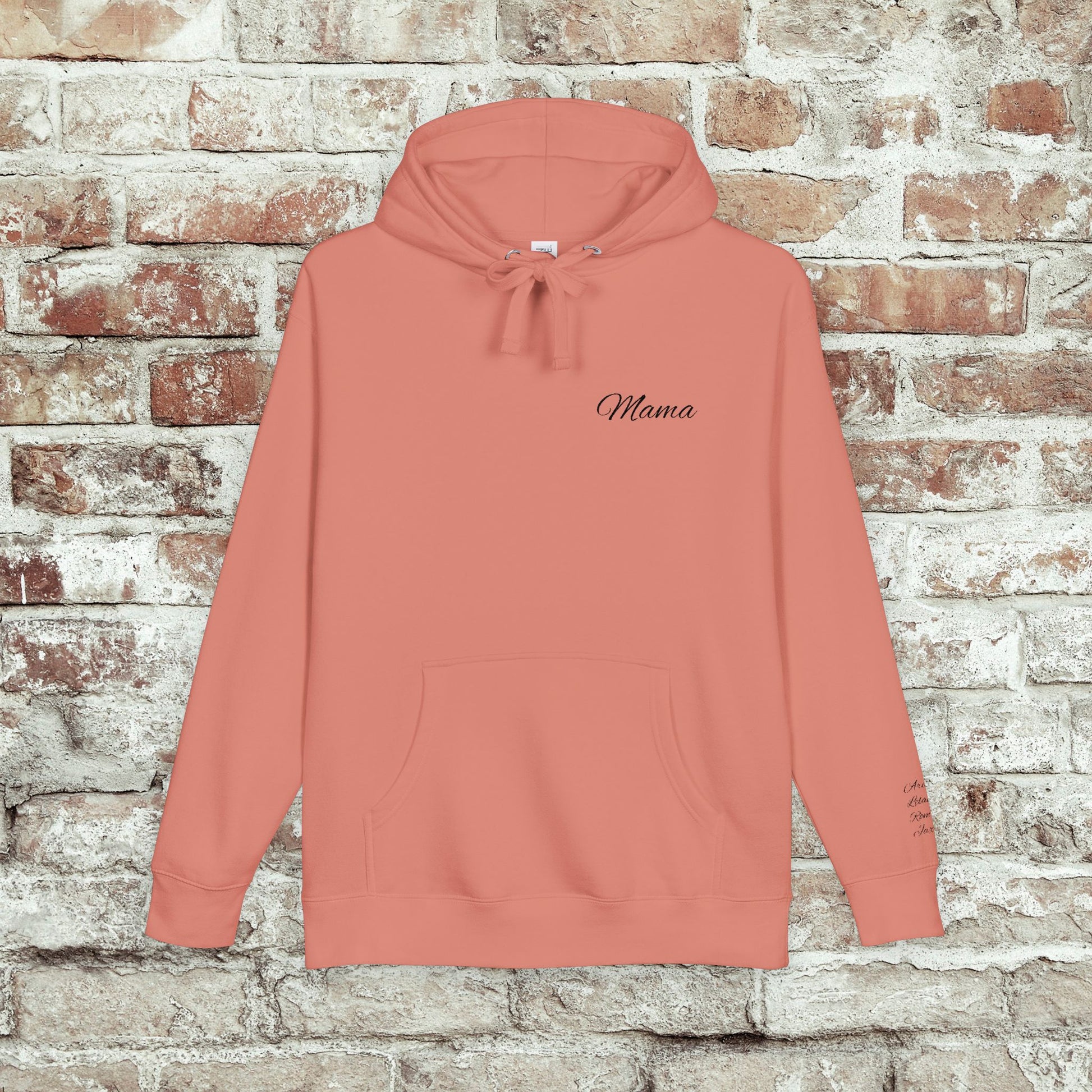 Wrap yourself in comfort and love with this cozy Personalized Mama Hoodie. Featuring elegant “Mama” embroidery on the chest and your children’s names delicately stitched down the sleeve, it’s the perfect blend of sentimental and stylish. Whether you’re chasing littles or enjoying a rare quiet moment, this hoodie is your everyday reminder of what matters most.