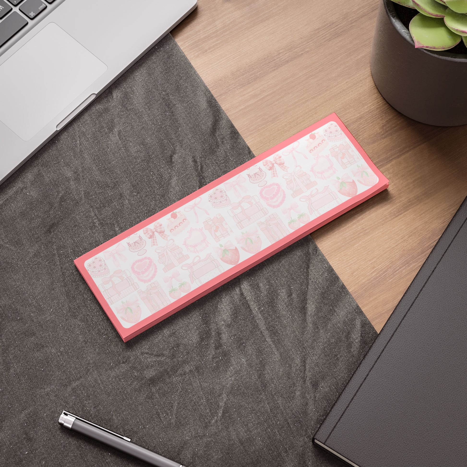 💖 Features: • Soft pink coquette-inspired design with bows, strawberries, and cakes! (Who doesn't love cake?!) • 50 sheets per pad • Durable adhesive backing for easy sticking and peeling • Perfect for planners, journals, desks, and gifting • Aesthetic enough to make boring to-dos feel ✨fancy✨