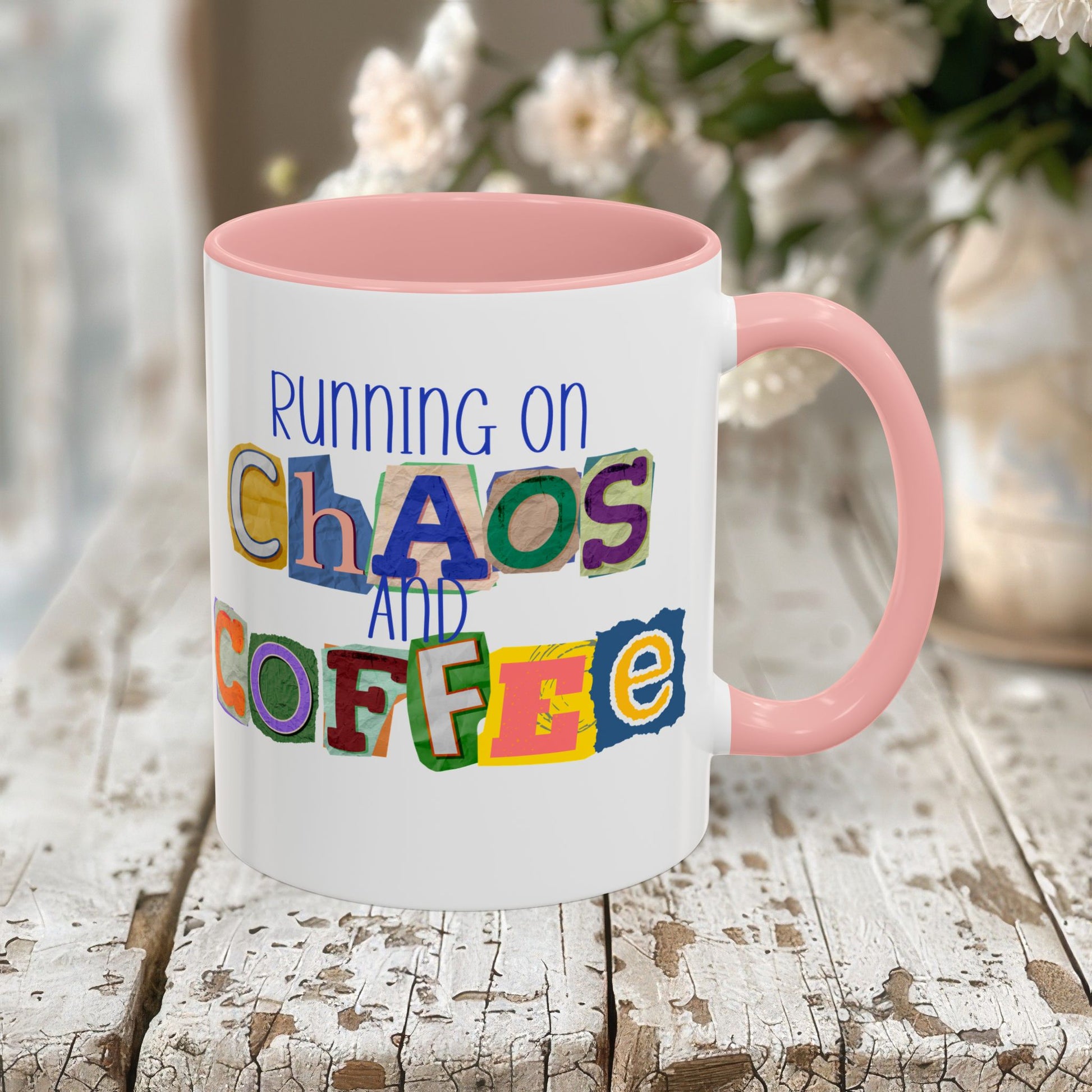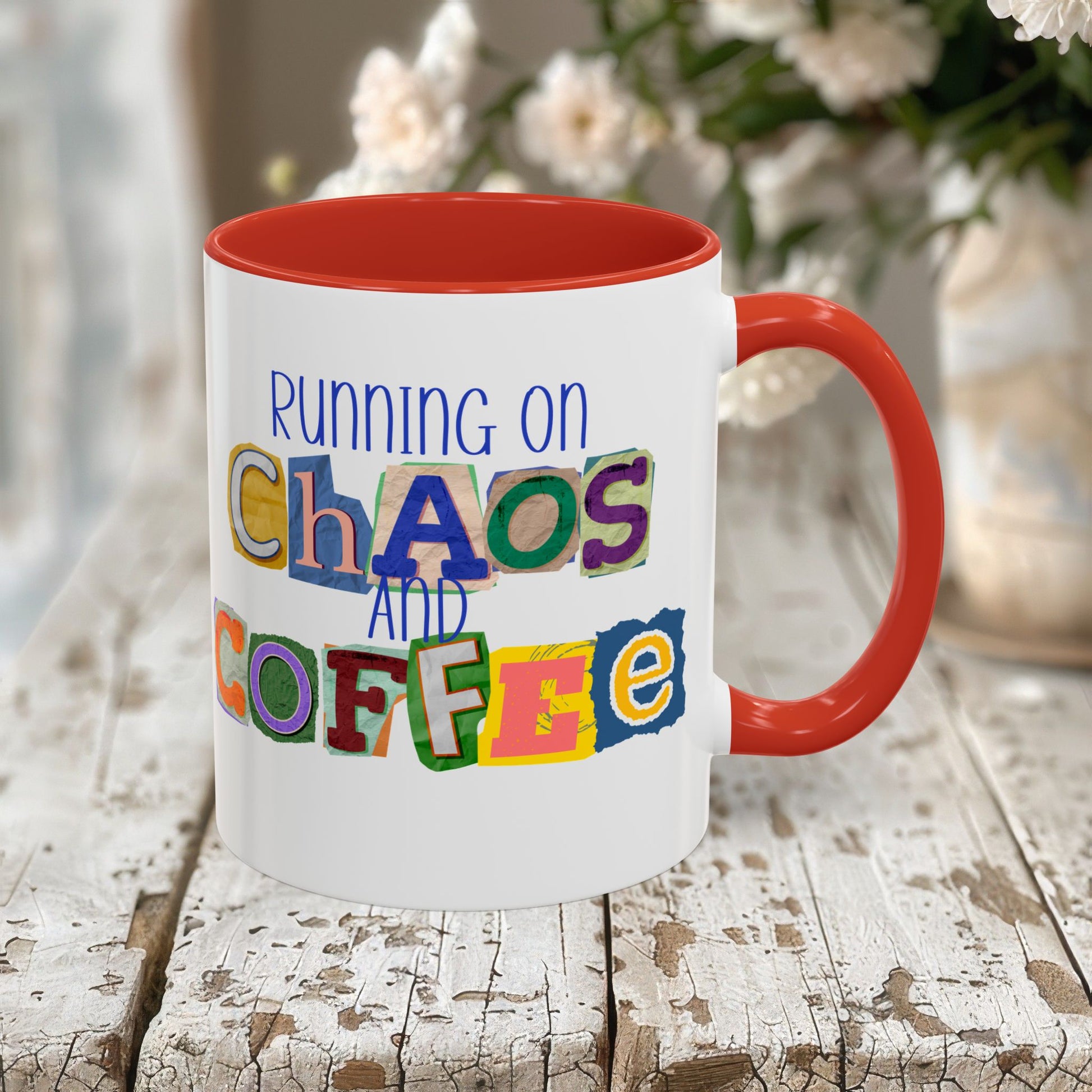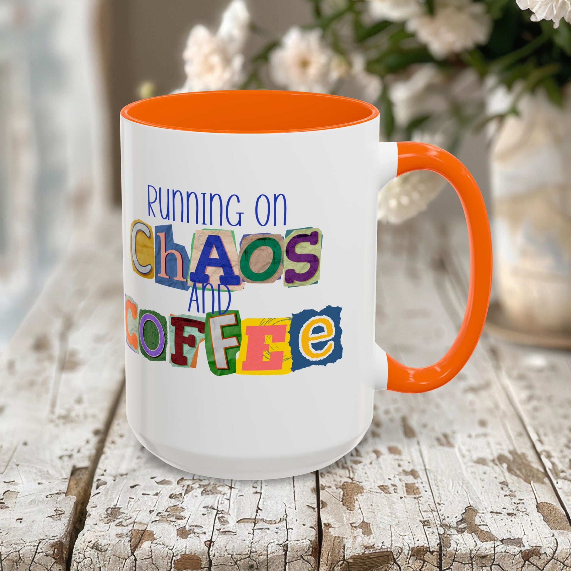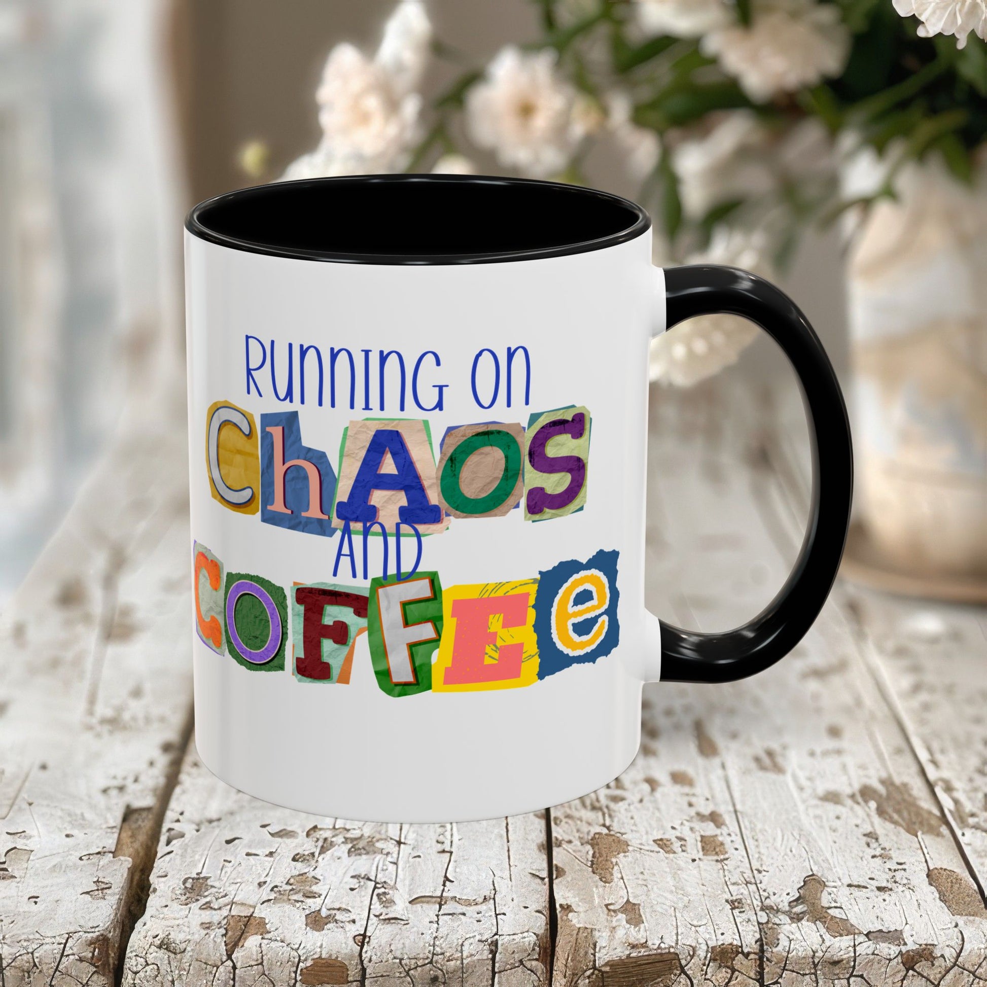 Running on Chaos and Coffee Mug Funny Two Tone Cup
