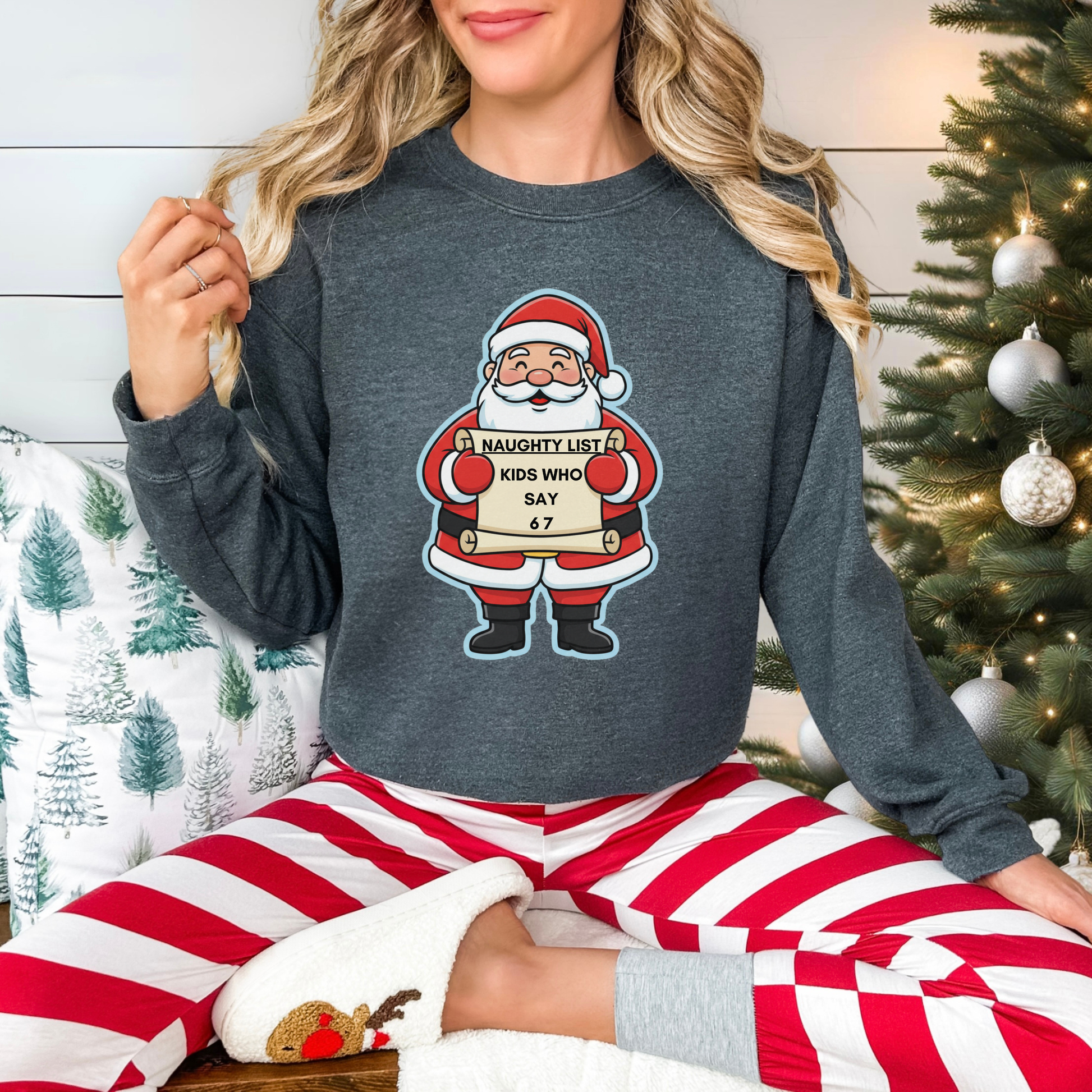 Santa 6-7 Sweatshirt – “Naughty List” Funny Christmas Crewneck