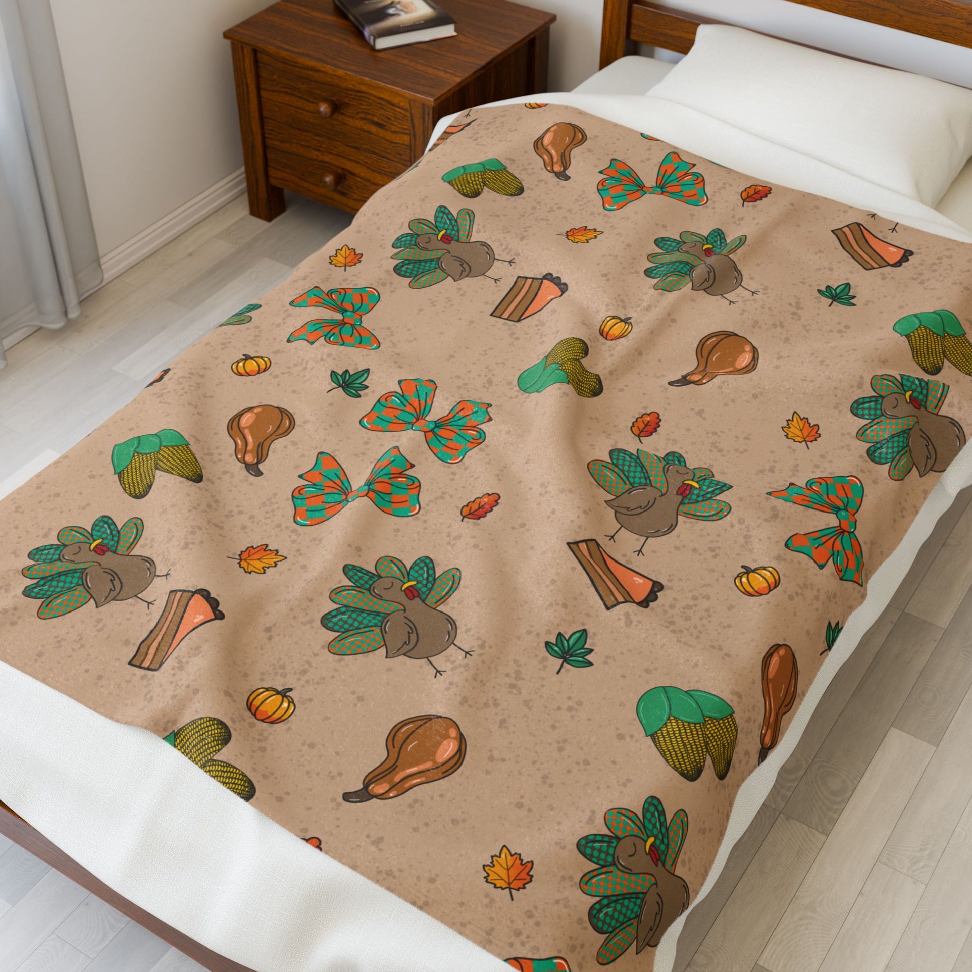 Thanksgiving Velveteen Plush Blanket, Cozy Throw for Fall Decor, Soft Blanket for Cozy Nights, Holiday Gift, Home Accents