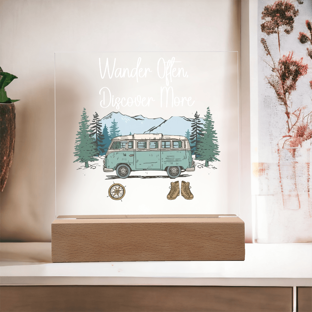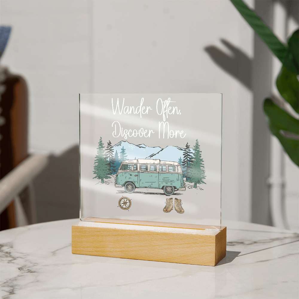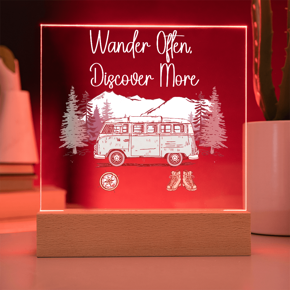 Your plaque will be crafted from premium acrylic with a professionally printed design for a polished look. It comes with a stylish wooden LED base, and you can choose between a USB plug-in option OR a cordless battery-operated option (requires 2 AAA batteries, not included). Both LED bases feature 7 vibrant colors, allowing the user to customize the lighting with various color changes and dynamic cycles.