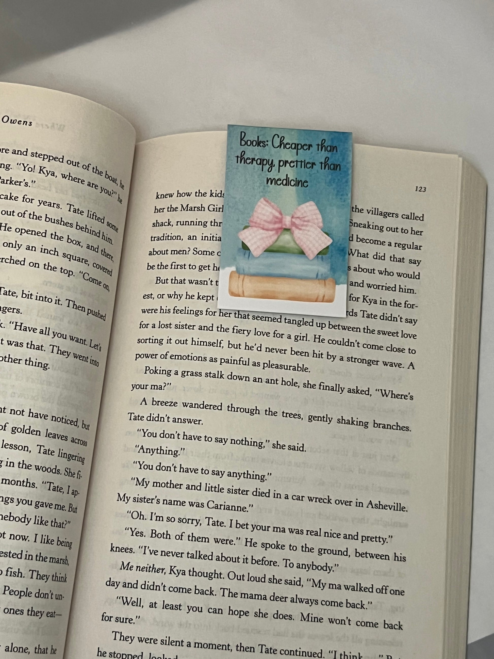 Watercolor Coquette Bow & Books Magnetic Book Marks