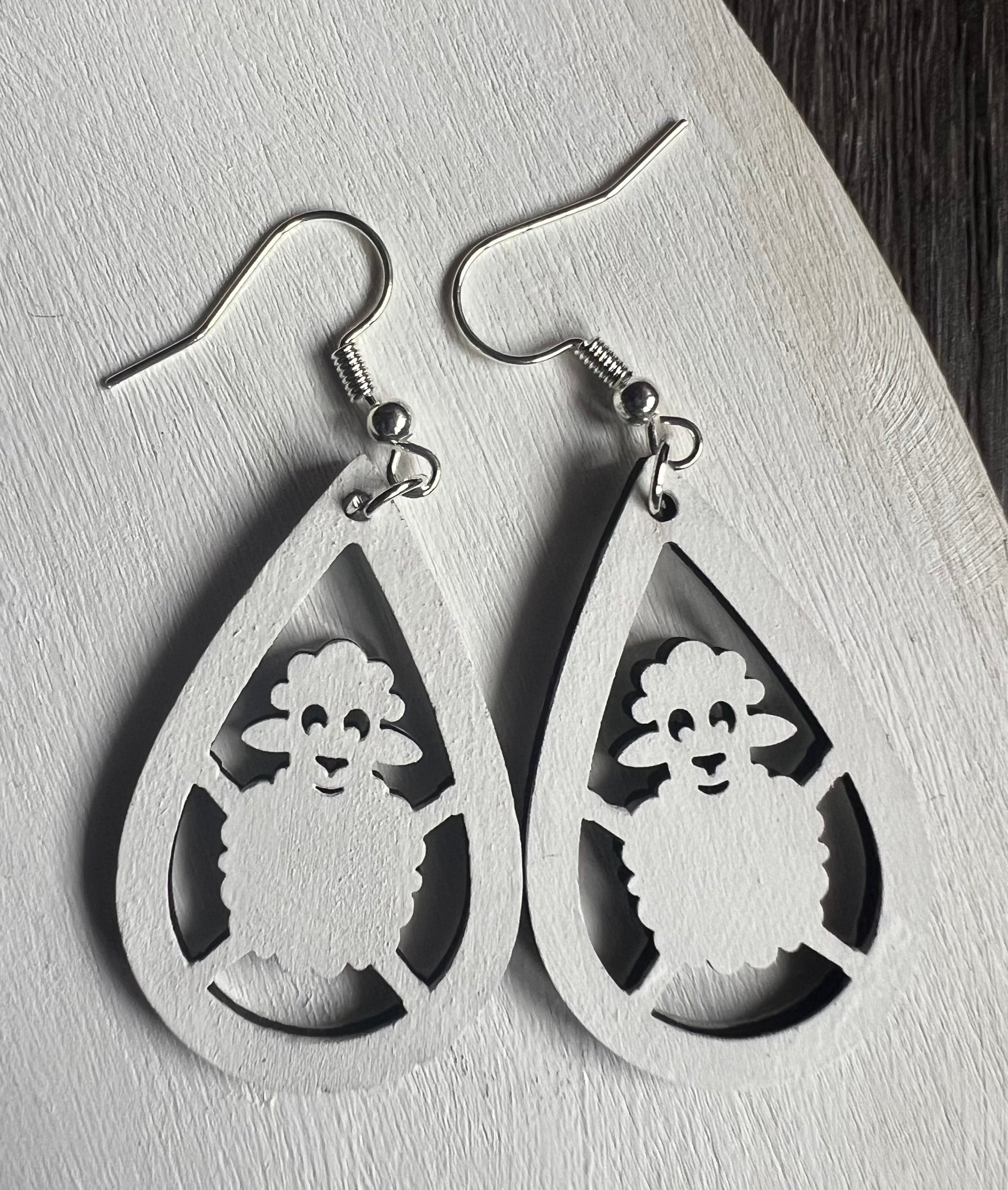 These sweet white teardrop earrings feature an adorable sheep silhouette, making them the perfect accessory for farmhouse lovers and cozy country vibes. Lightweight and easy to wear, they’re great for everyday outfits, festivals, or gifting to your favorite farm animal fan.