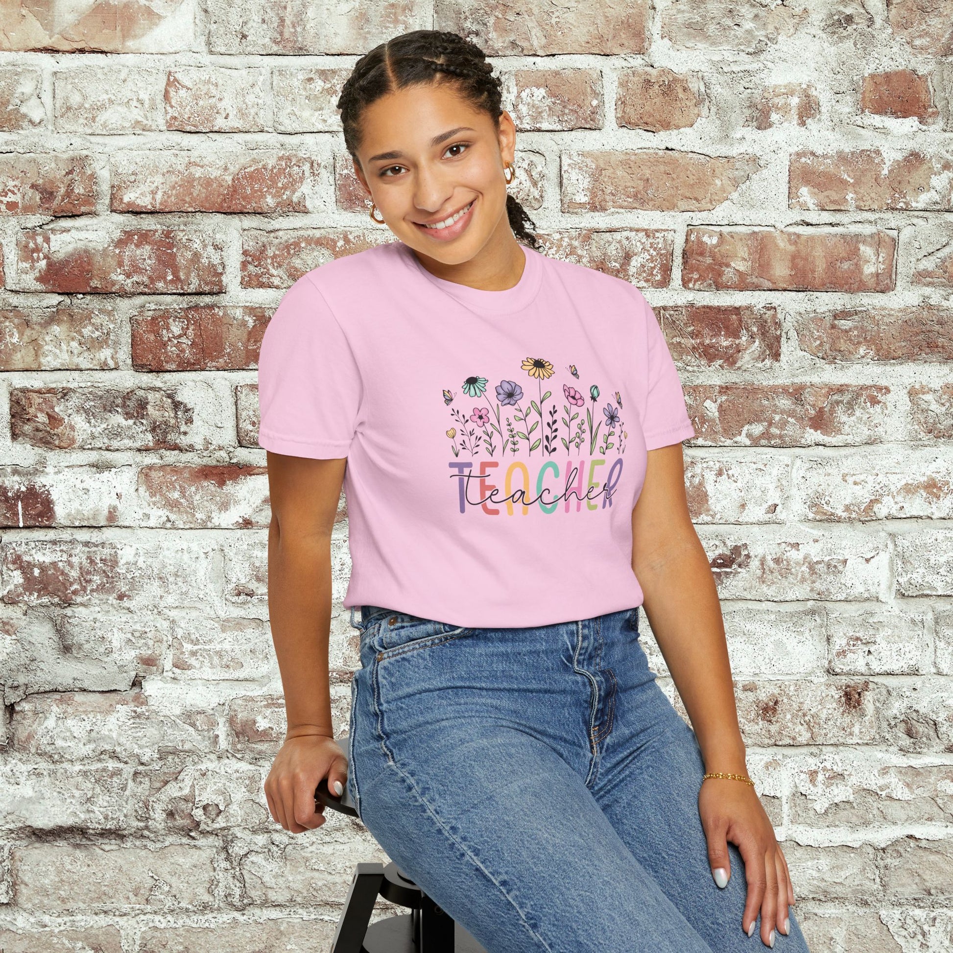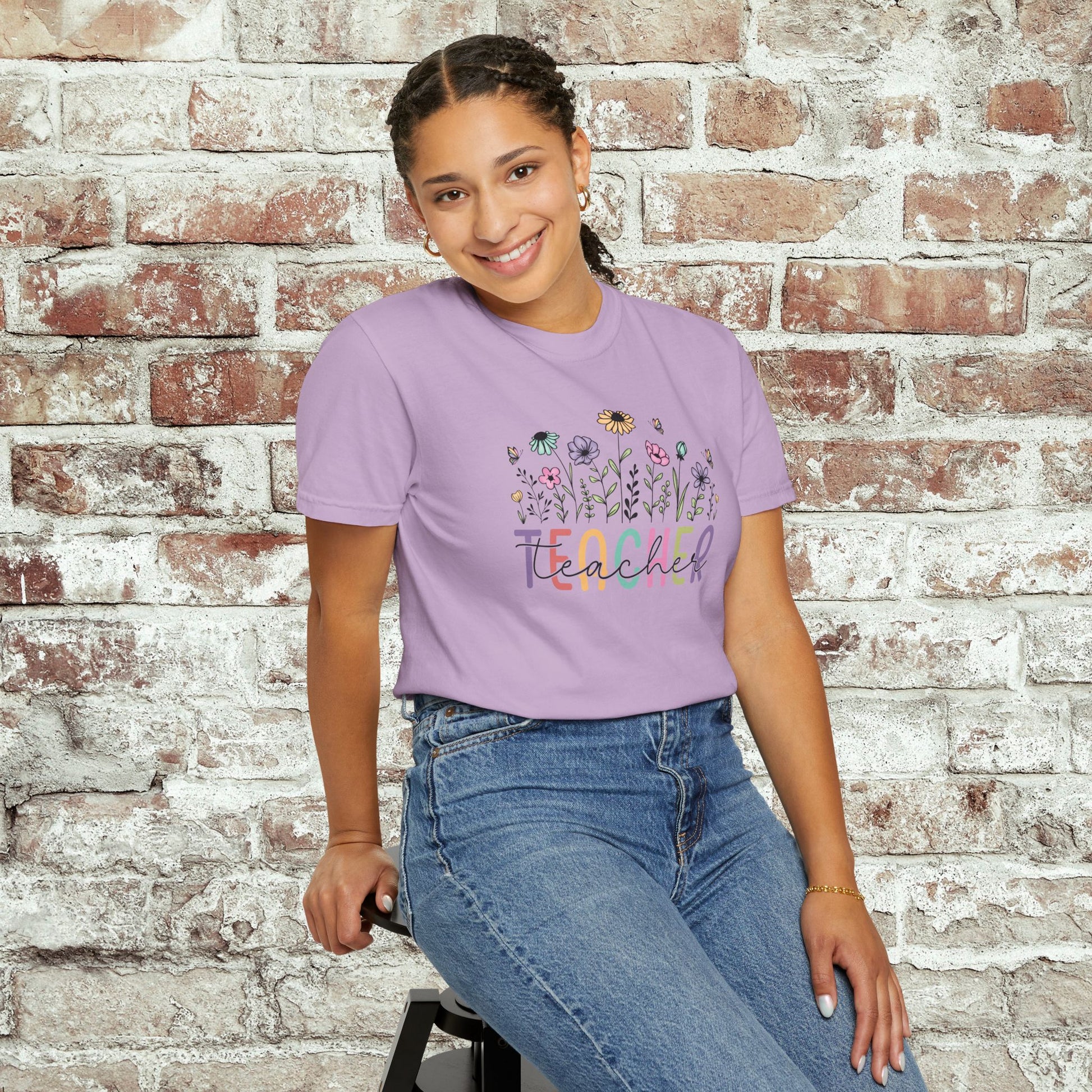Our Wildflower Teacher Comfort Colors T-Shirt exudes a cozy and laid-back vibe, perfect for teachers who appreciate floral designs. This garment-dyed tee is comfortable for all-day wear and can easily transition from the classroom to casual outings. It is relevant for teacher appreciation week, back-to-school, and end-of-year gifts. Product features - Available in multiple sizes from S to 4XL - Double-needle stitching for durability - Without side seams for a clean look - Garment-dyed for a soft color and texture - Made with 100% US cotton for long-lasting comfort